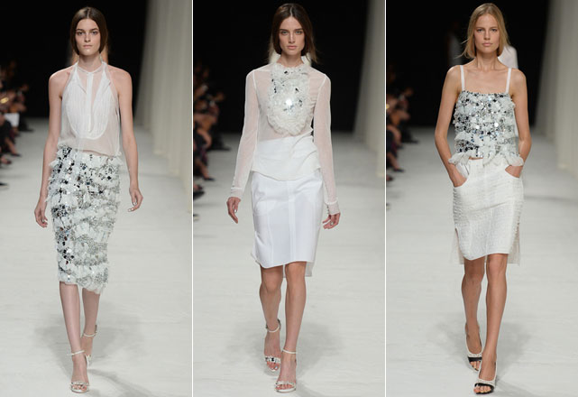 Três looks do verão 2014 da Nina Ricci eleitos pelo nosso editor de moda Sylvain Justum – Fotos: Getty Images