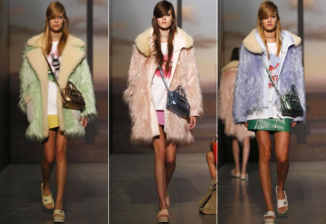 As propostas são simples e diretas – ainda que poderosas. Combinações básicas de saias e calças de couro com camisetas e tricôs com ótimas estampas de gremlins, falam de uma feminilidade cool, totalmente descomplicada. Vestidos transparentes e estampas de onça em tons pastel entram no mesmo pacote. É que realidade está em alta na moda e se relaciona perfeitamente com a história da marca.