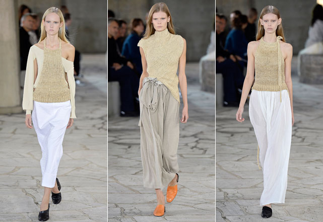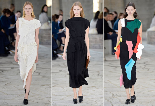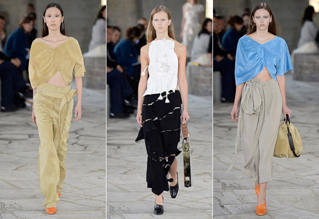 Em junho, Anderson já havia dado uma prévia de sua visão para a marca com a coleção masculina. Mais do que uma lançadora de tendência sazonias, a ideia aqui é a oferecer um guarda-roupa real, possível e duradouro. Em outras palavras, vender um estilo de vida – e não só roupas (as quais já estão à venda em algumas lojas da marca e no net-a-porter). Faz sentido, então, o foco na silhueta relaxada (superdesejável) e o trabalho em básicos atualizados através de modelagens e construções algo inusitadas e fora do comum. Bem como as várias bolsas, quase sempre grandes em proporções bastante práticas. Já algumas decorações, como os apliques de folhas, algumas formas muito envoltas ao corpo, já não fazem tanto sentido. Se distanciam da realidade a qual o estilista tanto almeja.
