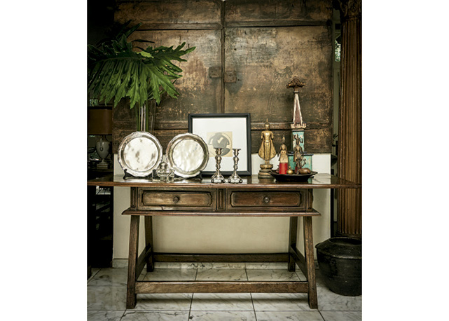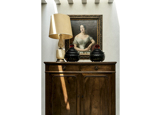 A casa onde Alba recebe Bazaar para este editorial, no bairro Alto de Pinheiros, na capital paulista, foi construída por seu pai, o engenheiro Francisco de Paula Machado de Campos, fundador do Museu de Tecnologia de São Paulo, um visionário, segundo a própria. No décor, uma mistura das heranças das famílias de Alba e do marido, dos gostos do casal e de seu olhar particular, especialmente pelo Brasil. Panelas mineiras de pedra-sabão, mesas de trabalho antigas, um armário de paracatu e uma coleção rara de cerâmica saramenha (o primeiro tipo de louça manipulado no País; feitas de barro, são frágeis e pouca coisa sobreviveu à passagem do tempo) convivem em harmonia com cadeiras Brno em aço e couro, um lustre francês de cristal de rocha, quadros com retratos de antepassados e galhos dependurados no teto, resquícios de uma decoração de Natal que nunca mais saíram dali – fantasias permitidas.