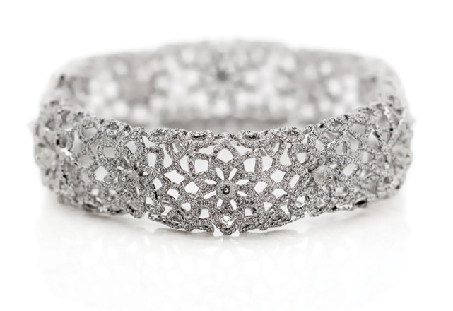 O e-commerce de luxo Swoonery se prepara para vender peças exclusivas da designer Neha Deni. Entre elas, encontramos está o Amarante Bracelet, uma pulseira que contém mais de 75 quilates de diamantes cor-de-rosa naturais e foi avaliada em US$ 3 milhões (cerca de R$ 9 milhões). Inspirada em flores desabrochando em galhos, a peça contém 18 diamantes fancy vived purplish-pink com o total de 4.02 quilates, que representam os pistilos da flor, e mais de 11 mil diamantes rosa menores. No total, são 72.83 quilates que formam as pétalas das flores. Cada diamante tem um certificado individual do Instituto de Gemologia da América, o GIA.