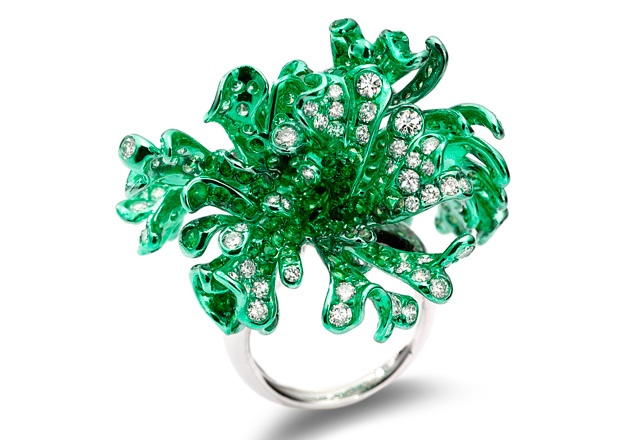 Neha Dani, que mora em Nova Deli e tem certificado de gemóloga, tem duas coleções disponíveis no Swoonery. Uma de alta-joalheria, com peças mais tradicionais e ricas em detalhes, e outra batizada de Cadence, que tem como referência plantas subaquáticas.