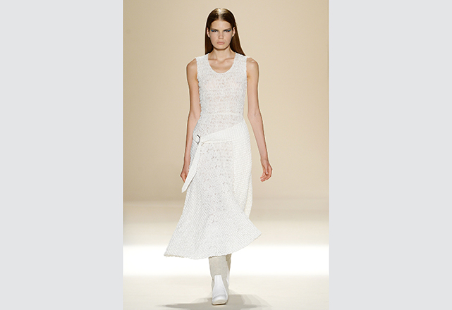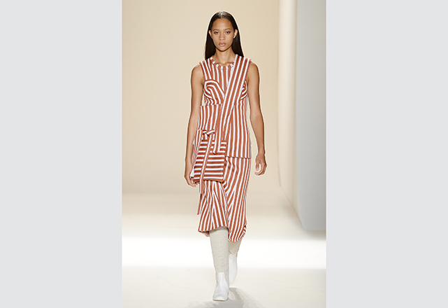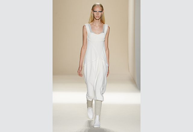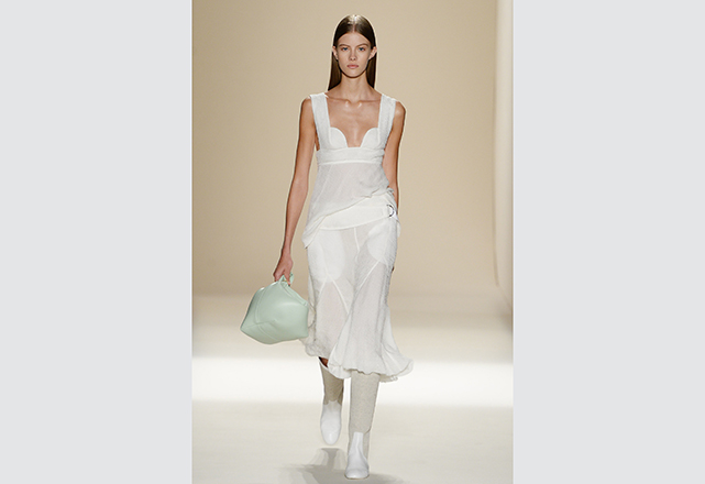 Victoria Beckham apresenta uma moda descomplicada para seu verão 2017. A estilista apresentou looks monocromáticos, assimétricos e com uma cintura marcada com ajuda de faixas e amarrações. Além disso, o comprimento midi aparece em quase todas as peças da apresentação.