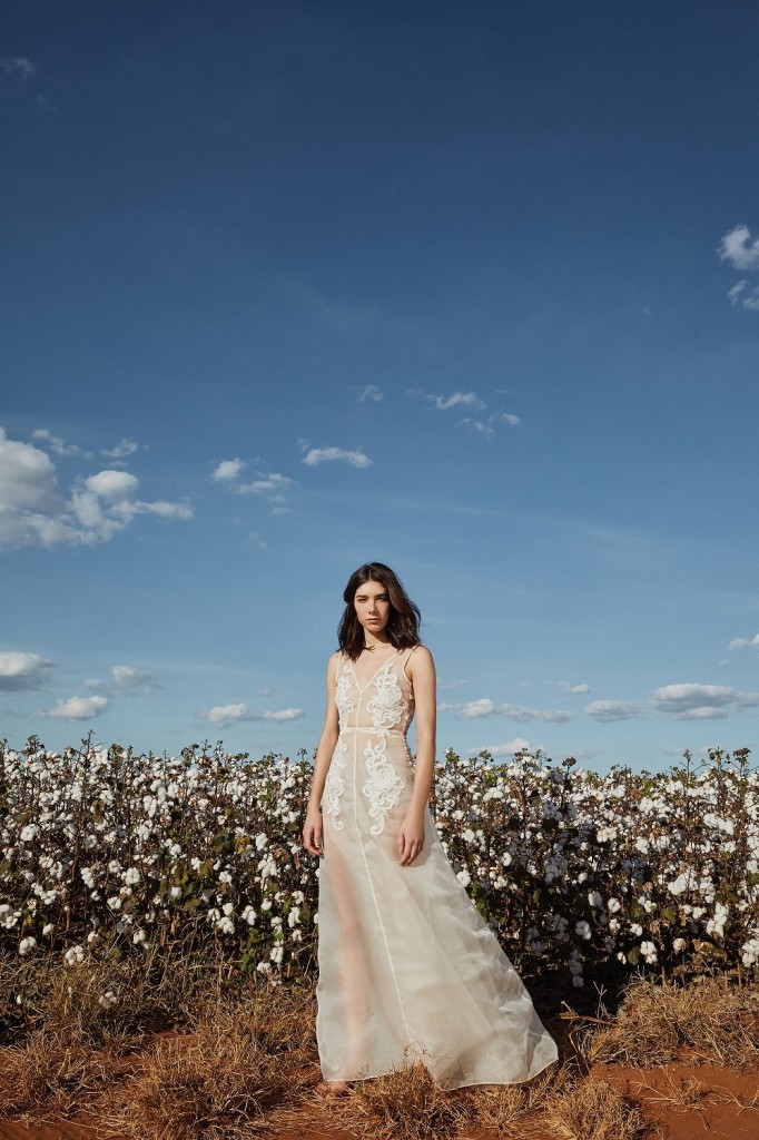 Nessa nova empreitada é possível observar o amadurecimento da marca, que apresenta 15 modelos incríveis, alguns com mangas longas e bufantes, e com um quê romântico, perfeitos para celebrações ao ar livre. A conexão entre o despojado e o elegante está muito bem representada pelos bordados rústicos manuais com fios de seda e na nobreza dos tecidos usados.