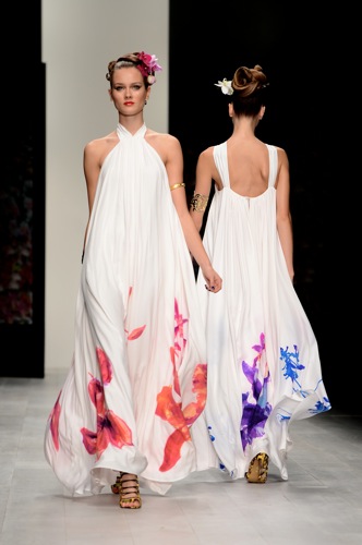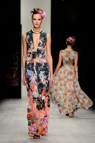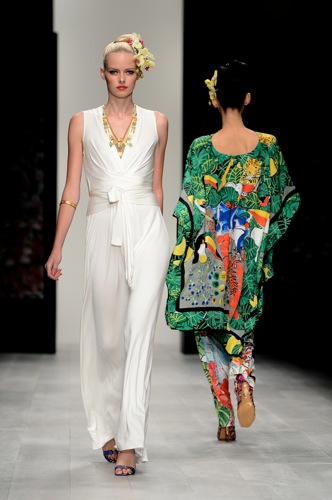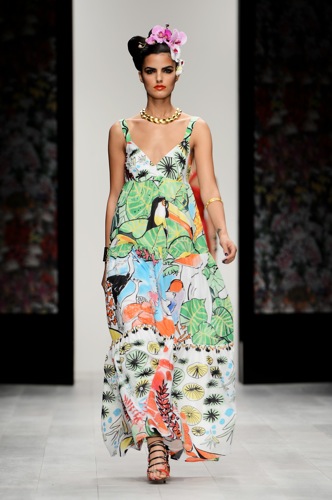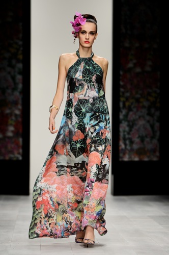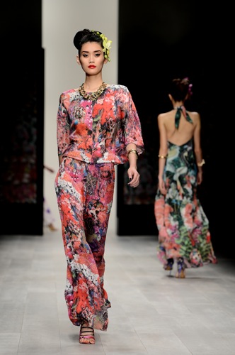 Para o verão 2013, Daniella Helayel – designer à frente da Issa London -, faz uma viagem tropical ao oriente, mesclando referencias da Ásia, com silhuetas dos anos 1970, cores e estampas exuberantes.