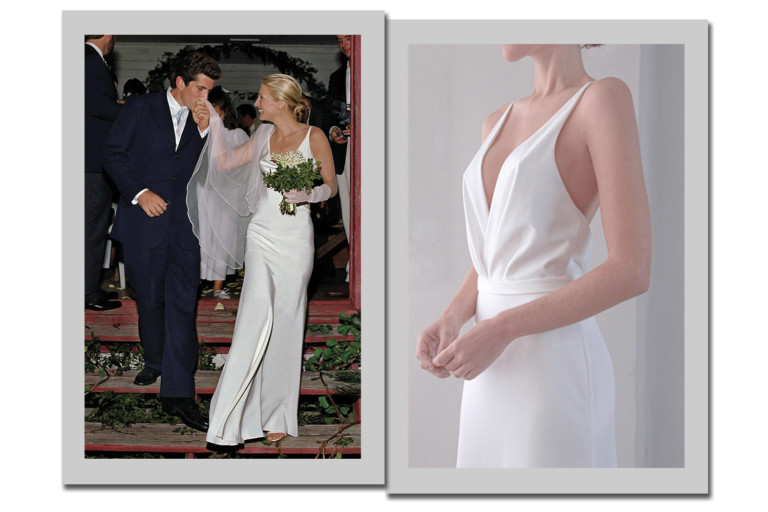 Após uma década over, os anos 90 trazem o minimalismo. A moda agora é um vestido clean, que marcam a silhueta. Rendas e bordados quase não existem. Além disso, o véu é deixado um pouco de lado. Como o vestido usado por Carolyn Bessette-Kennedy!