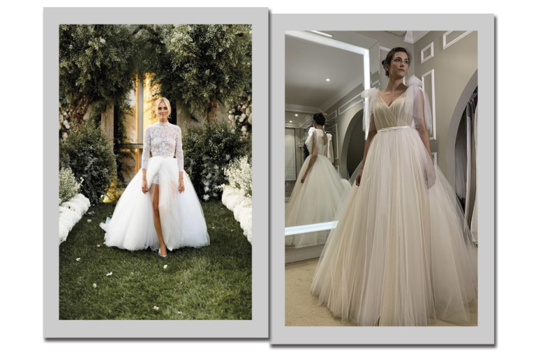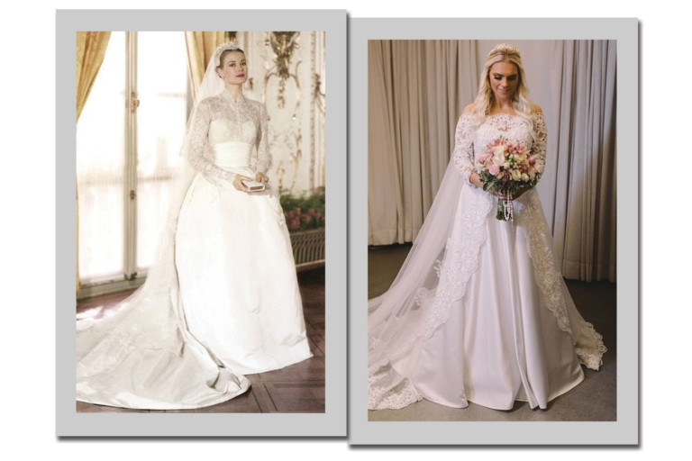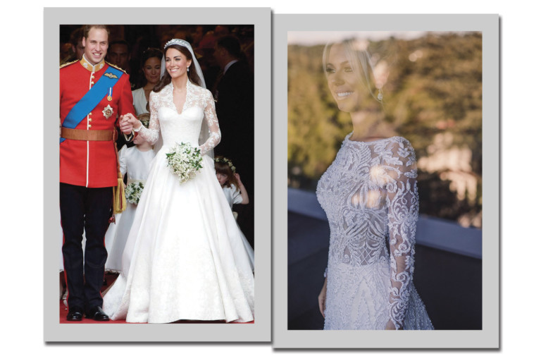 Vestido clássico, porém, repaginado, fazendo referência ao vestido usado pela Grace Kelly, em 1950. Saia com volume, véu, cintura marcada – estéticas presentes em uma noiva mais romântica, porém com uma pegada mais moderna. A aposta de Kate Middleton reflete esta noiva, que foi tendência na última década.