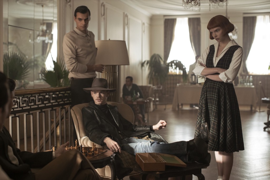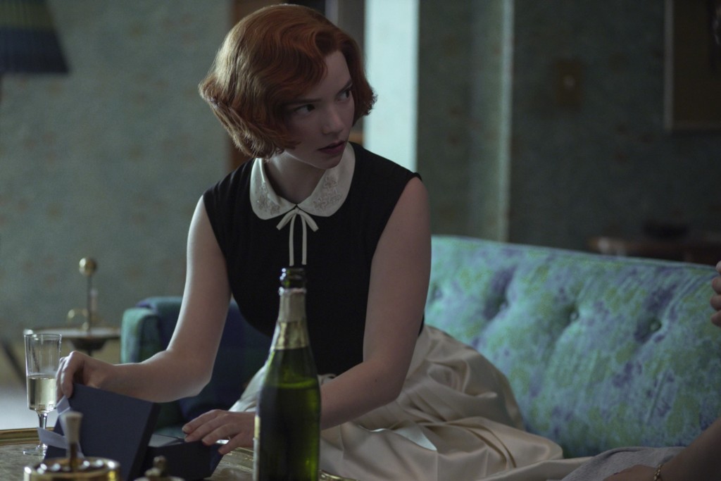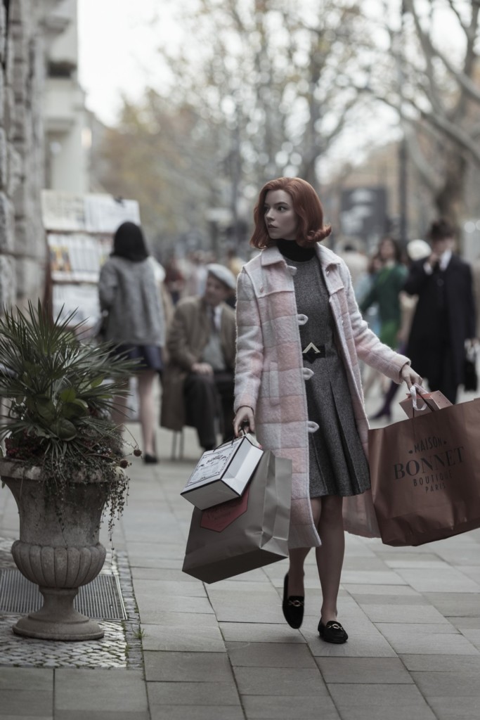 Com um recorde de audiência da Netflix, é quase impossível encontrar alguém que não tenha se rendido às disputas de xadrez de “O Gambito da Rainha”. A série, estrelada por Anya Taylor-Joy, é ambientada nos anos 1960 e apresenta visuais carregados de elementos da época, mas que são ao mesmo tempo atemporais e elegantes. As roupas marcam a trajetória da jogadora em uma época em que o feminismo começa a ser explorado pelas mulheres – também na moda.