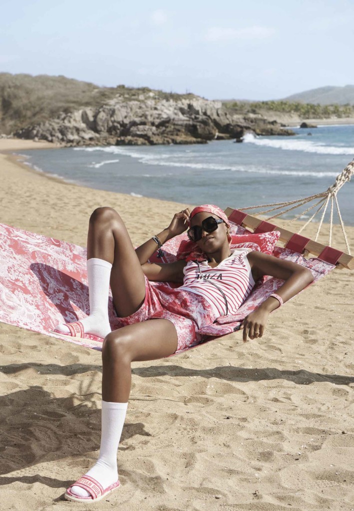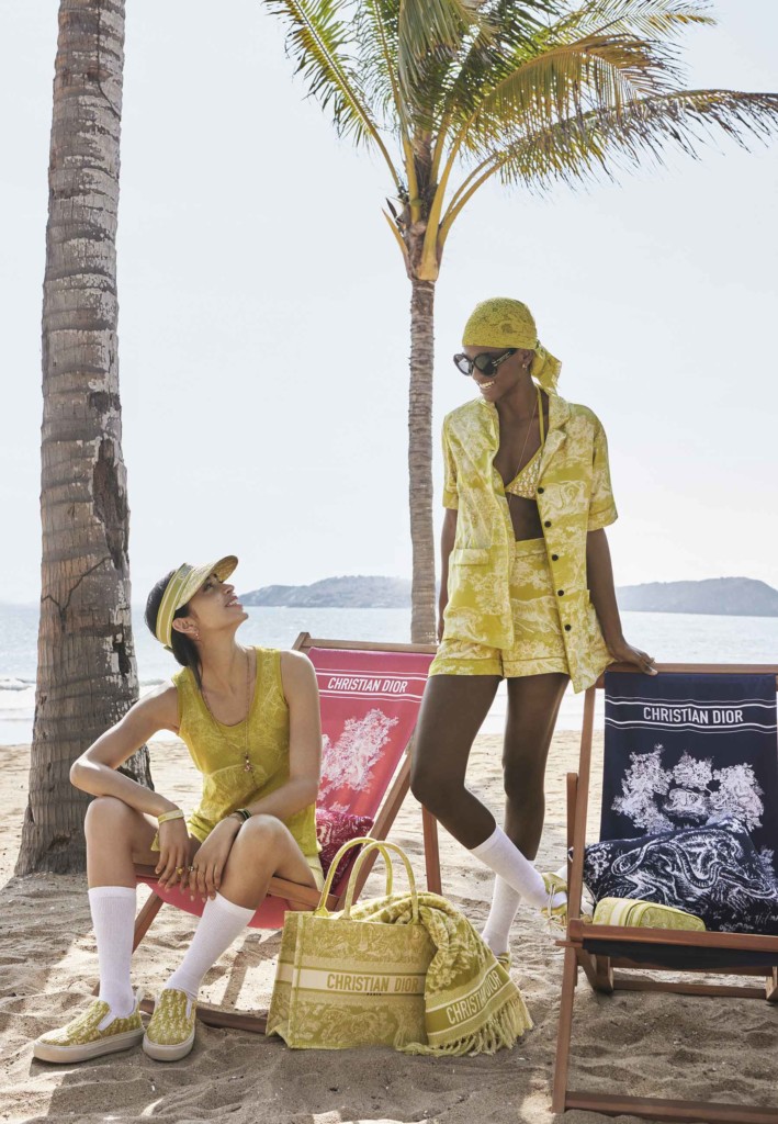 As bolsas da maison, como a Lady D-Lite e a Dior Caro, combinam com novos tops de marinheiro com nomes de destinos de férias. A linha está disponível em sete boutiques Dior, em Saint-Tropez, Cannes, Mônaco, Portofino, Capri, Marbella e Porto Cervo, além de nove lojas pop-up e nove resorts: na Vila de Mykonos, Mykonos Nammos, Forte Dei Marmi, Cortina, Il Riccio, Ibiza, Bodrum, Montecito e Montenegro, que pela primeira vez está hospedando uma vitrine na Marina Portonovi.