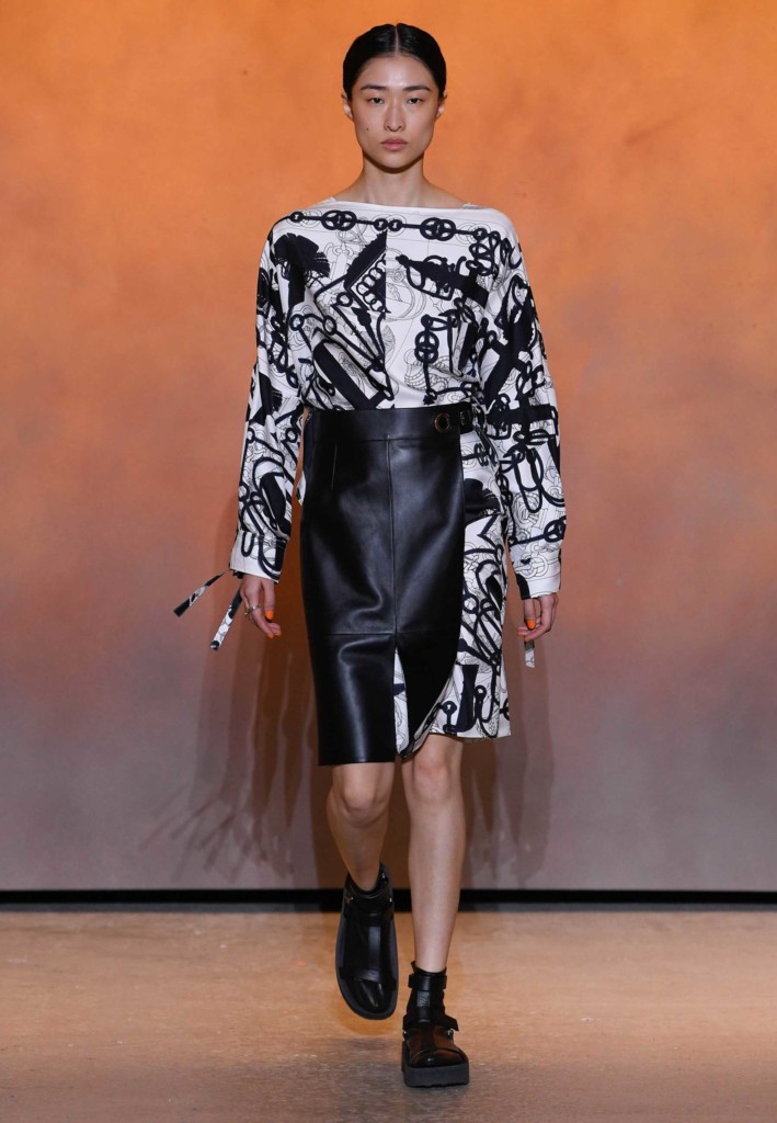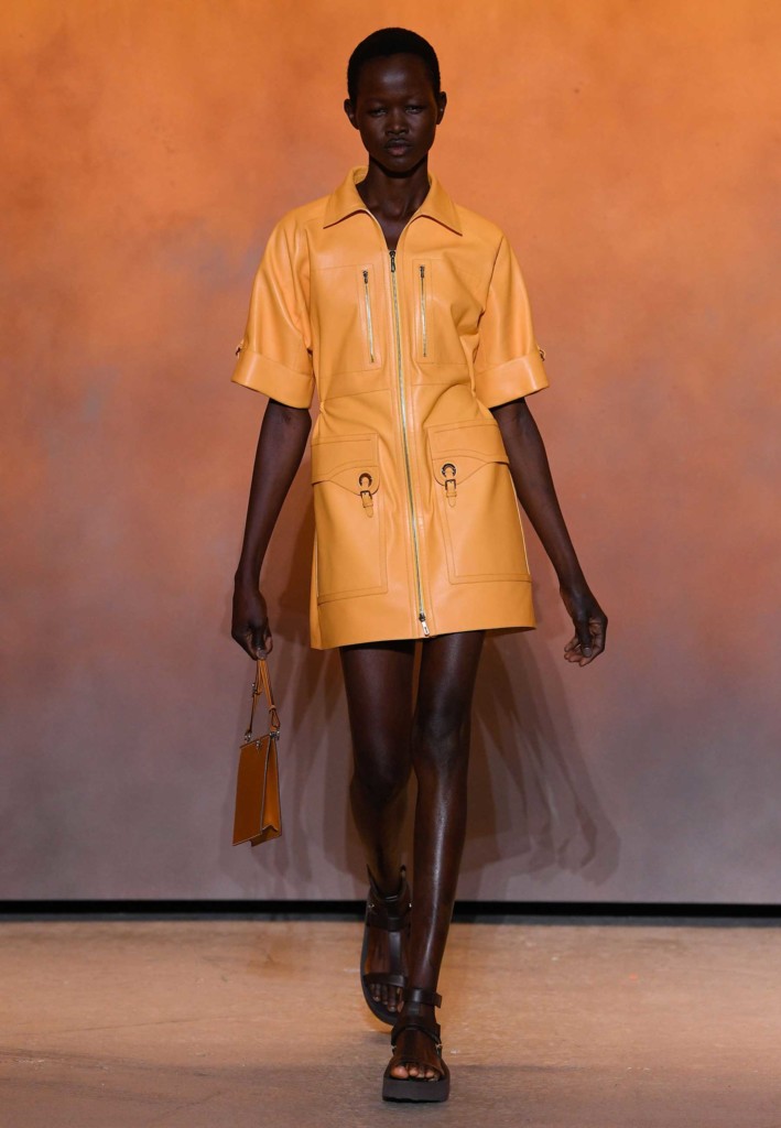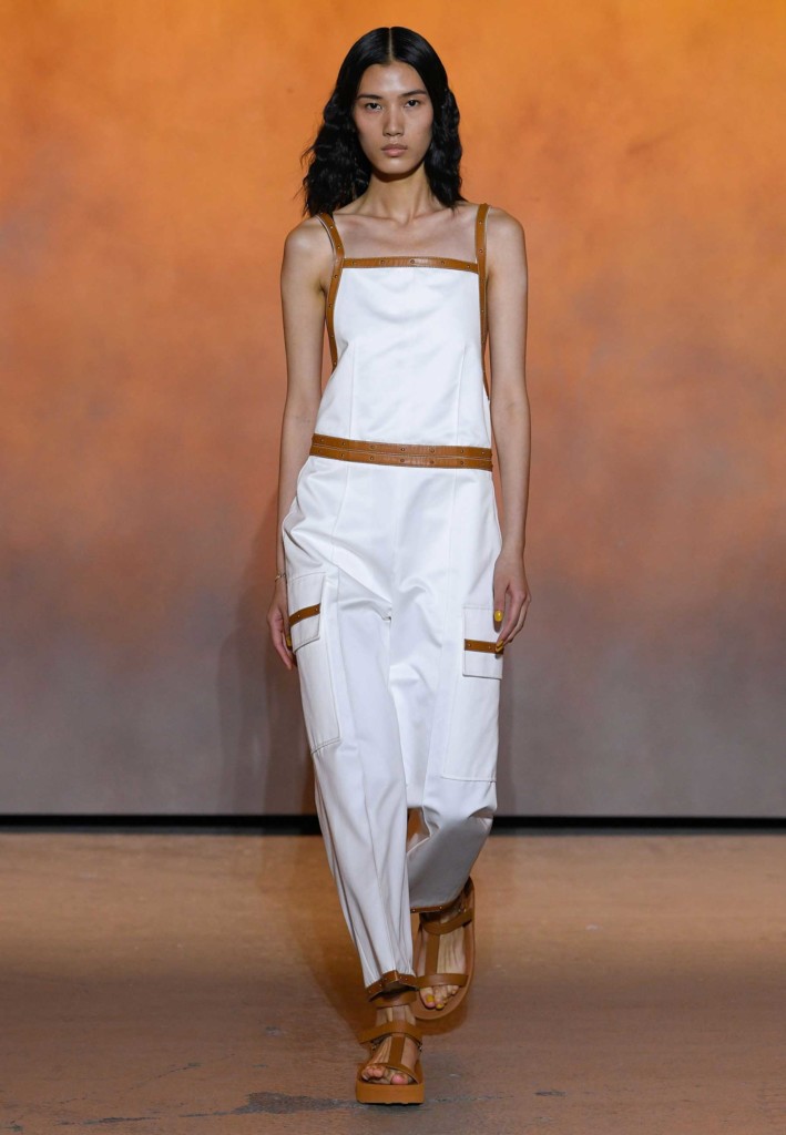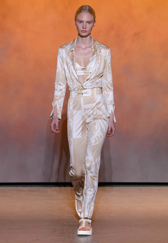 A década de 1960 inspira as proporções de vestidos e minissaias que ganham cós franzidos. Jumpsuits operários revolucionários também aparecem e ganham estampas de mandalas e arreios, estribos e cordas tradicionais da casa.