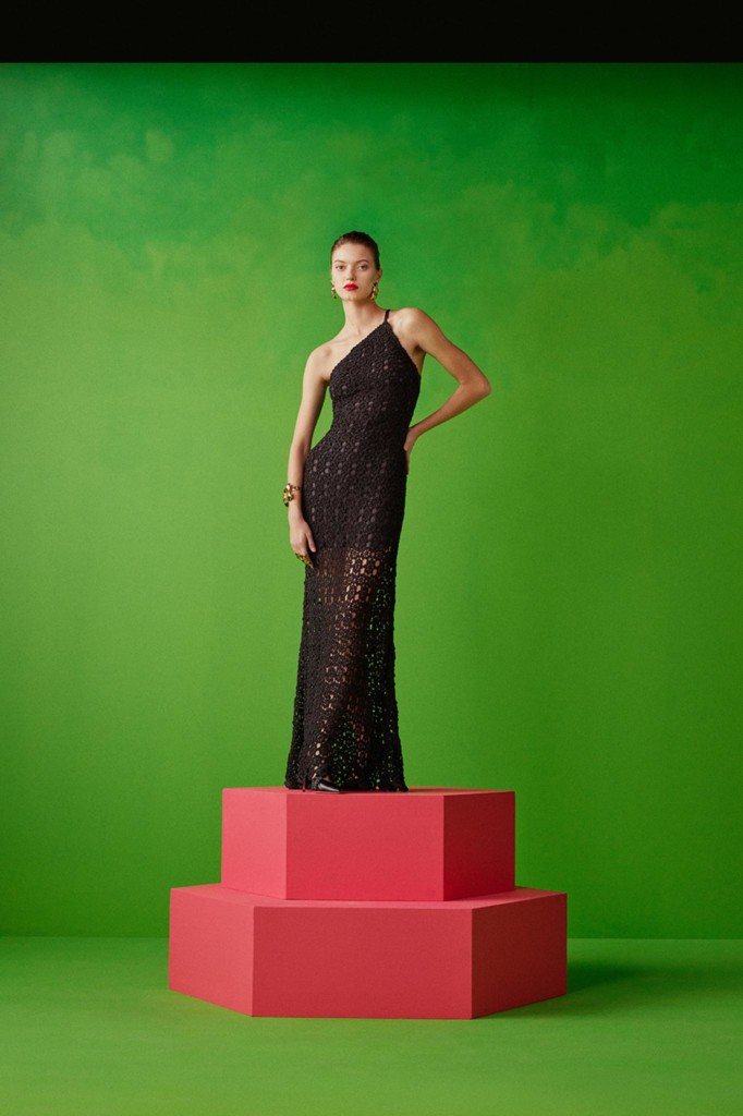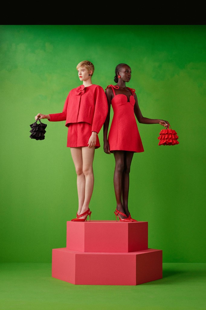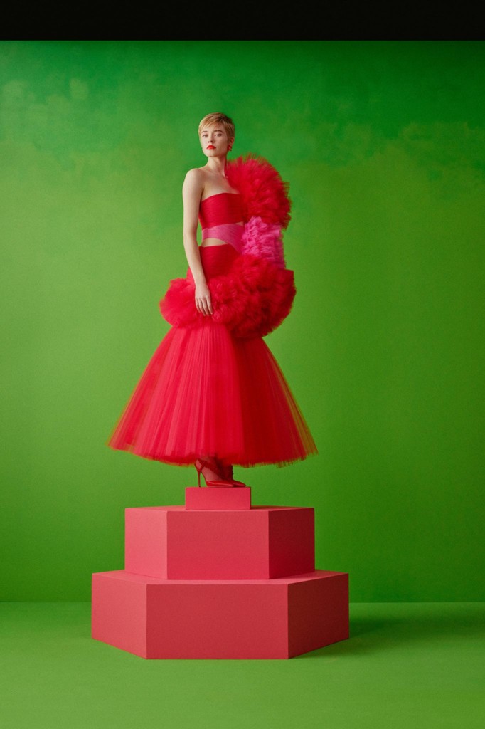 Por exemplo, o tema de dança de Gordon se estende por muitos gêneros – um vestido de tule rosa com corpete para um momento de balé, ou um vestido de franja prateado que transformaria um passeio comum em um momento especial. E a jaqueta de tule flamenco rosa exuberante – uma referência firme à herança venezuelana da Sra. Herrera – abre a coleção.