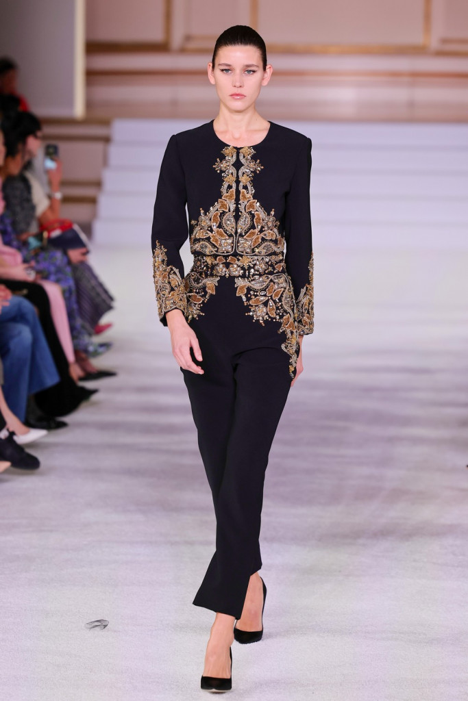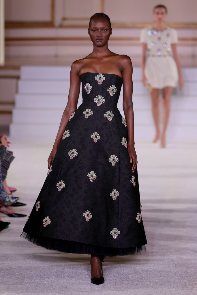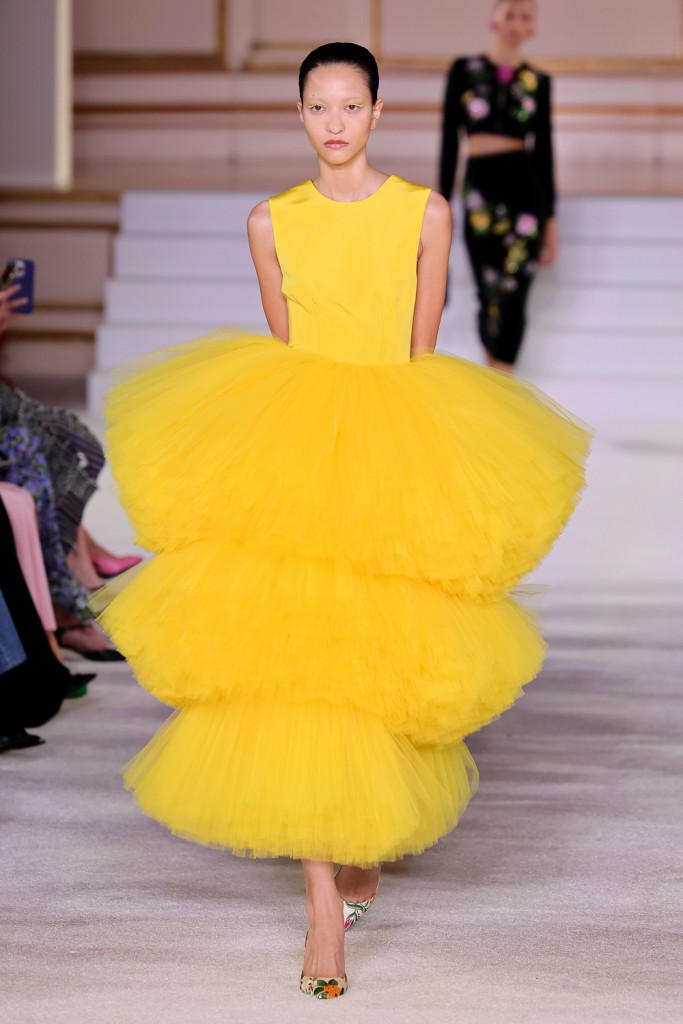 “Em uma ideia de disciplina com austeridade misturado com drama e exuberância, que, de certo modo, é a fórmula Casa Herrera”, declarou pós-desfile. A tradução disso? Tule, muito volume, brilho, renda transparente e um precioso trabalho de bordados feitos à mão tanto em looks de festa como para opções para o dia a dia.