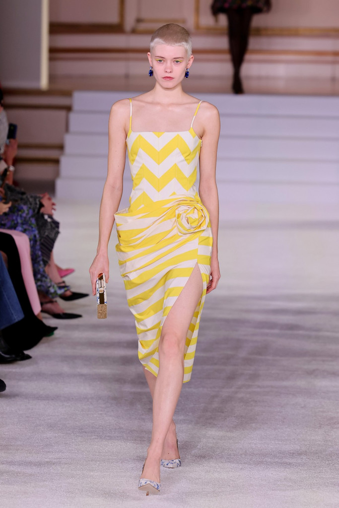 Estampas listradas e florais, sempre presentes na passarela da grife, também se destacaram. As capas, de diferentes comprimentos, apareceram como vestidos ou usadas por cima de diferentes looks. Na cartela de cores, do básico branco e preto aos vibrantes pink, limão e pistache.
