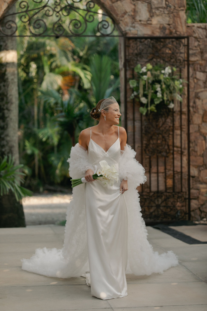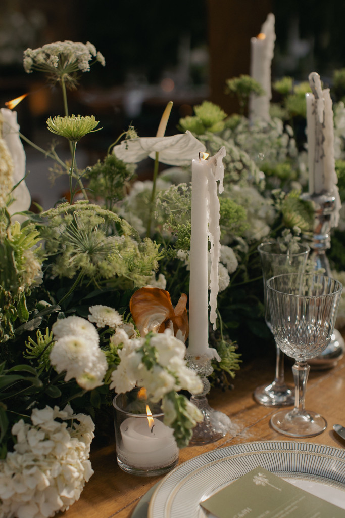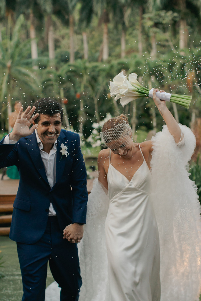 A celebração foi para 280 convidados, no Lago Buriti, em Guaratiba, no Rio de Janeiro. A escolha do local foi por conta das palmeiras imperiais e do lago cheio de vitórias régias, cenário que achamos lindíssimo. Foi muito especial de organizar tudo, pois a decoradora foi a Carol Oliveira, irmã do Pedro, então foi tudo pensado com muito amor.
