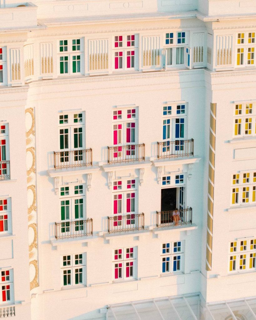 O Copacabana Palace, no Rio de Janeiro, é a segunda parada na jornada global de MITICO, onde Buren se inspirou na vibrante energia da cidade para criar sua obra mais monumental da série: “Escala Corida para Copacabana Palace, trabalho in situ, 2023″. Filtro de vinil coloridos adornam a famosa fachada do Copa, transformando o prédio de dentro para fora.