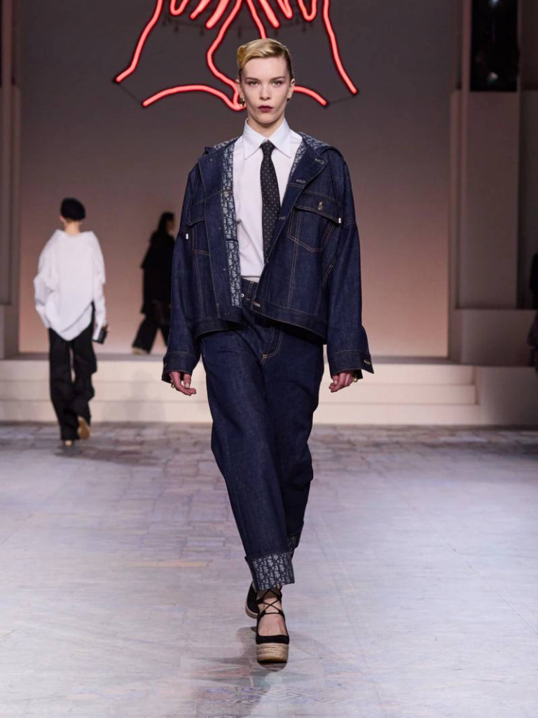 Nesta segunda-feira (16.04), a Dior levou para Nova York seu desfile de pre-fall 2024, com uma coleção que visita a relação da marca e de Maria Grazia Chiuri com a metrópole norte-americana. Entre outras referências, as peças mergulham no estilo de Marlene Dietrich, atriz que, nos anos 1930, firmou uma relação com a label – dentro e fora das telas. Ternos, gravatas, coletes e peças em tweed reforçam a inspiração na imagem forte de Marlene, subversiva para a época.