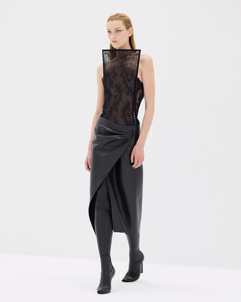 Nicolas Di Felice, um dos nomes mais talentosos da atualidade à frente da Courrèges, foi o escolhido para desenhar a nova coleção de Jean Paul Gaultier. Diferente dos outros convidados que interpretaram o melhor do enfant terrible, Nicolas foi mais para o abstrato, focando no que achava mais especial. Com base no espartilho, criou uma coleção inteligente, que leva a marca para outros lugares – conectada com a atualidade, ainda com seus códigos presentes.