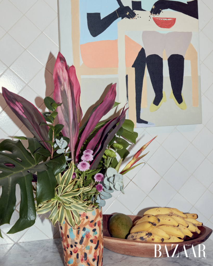 Filha de pai suíço e mãe carioca, Alexia nasceu em São Paulo e viveu praticamente a vida toda entre Suíça (Genève) e Inglaterra (Londres). Vinha sempre ao Brasil e cultivou forte ligação com o País de sua mãe. Em 2016, nas Olimpíadas do Rio, lhe foi dada a incumbência de criar os figurinos de abertura e encerramento do evento, e o resto é história. Foi passando cada vez mais tempo aqui, então veio a pandemia, o casamento com o italiano Arturo Isola, o nascimento do filho Elio, o apartamento novo em Higienópolis – o anterior era no mesmo bairro, mas a família cresceu e precisou de mais espaço. Assim eles trocaram um projeto de Vilanova Artigas por outro de Rino Levi, num dos prédios mais bonitos e charmosos da cidade, construído nos anos 1940 com jardins e ornamentos de Burle Marx.