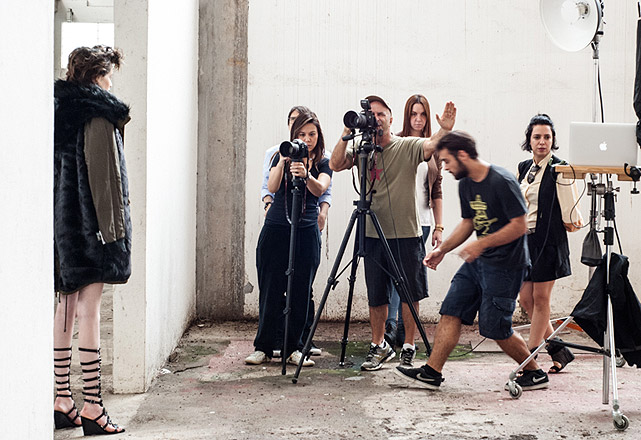 6 / 9Os cliques foram realizados em um galpão da Vila Leopoldina, em São Paulo. Paula Vainer coordena as poses de Thairine. Atrás dele, nossa coordenadora de moda Aline Borges. Ao lado, Renata Correa – Foto: Giselle Galvão