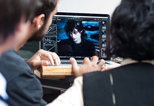 9 / 9Renata Correa confere o resultado final do ensaio em um laptop – Foto: Giselle Galvão