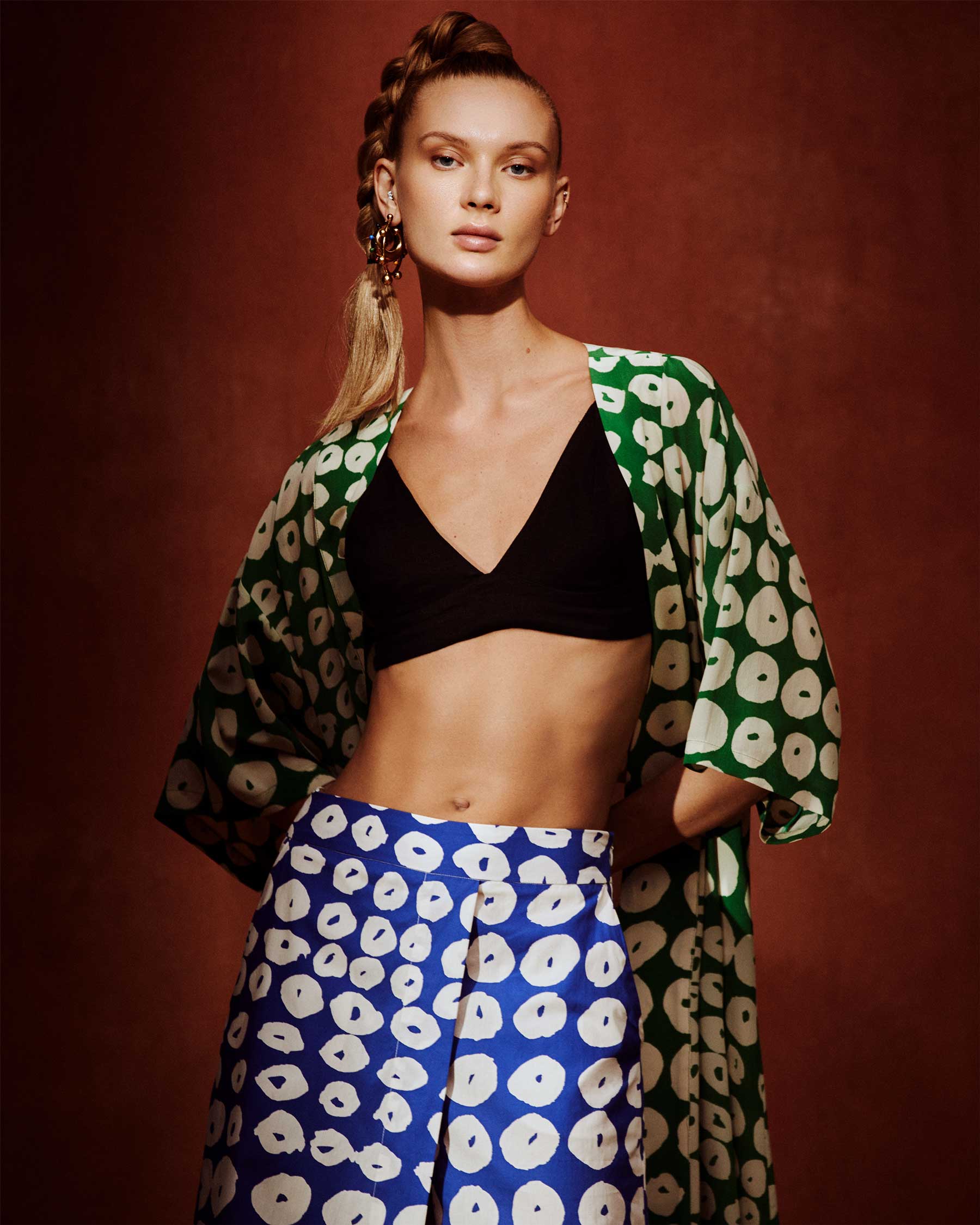Os shapes são democráticos e fluidos. “Adoramos que nossas criações vistam tanto uma menina PP quanto uma senhora tamanho G. Queremos acolher todos os corpos em peças versáteis, que vão da feira ao baile”, diz Betina. Os tecidos também refletem a preferência da dupla da BDLN: seda, linho e algodão.