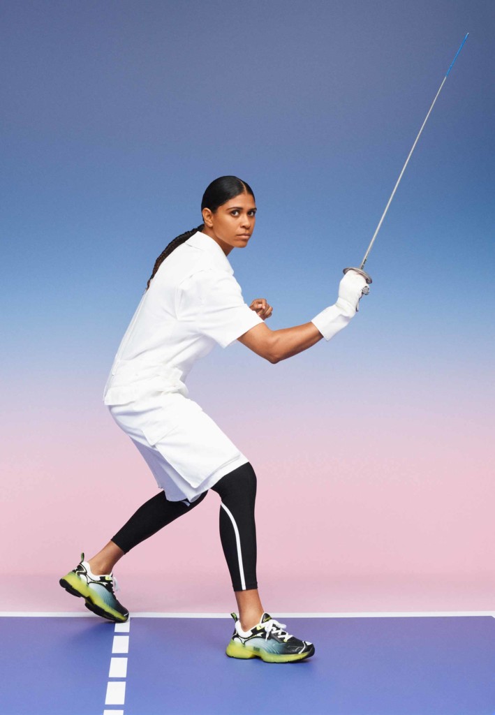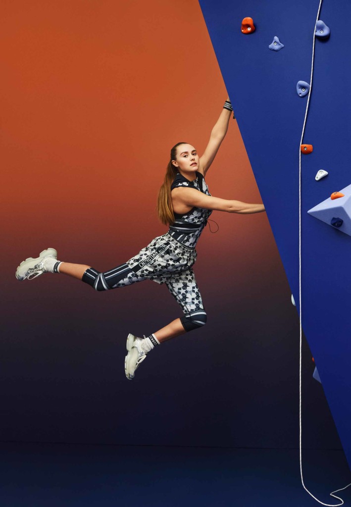 As silhuetas foram completadas com bonés e os novos tênis Dior Star, pontuados com a estrela, assinatura da maison. Em outros lugares, o mundo do boxe é evocado através de padrões arrojados com um tigre ou um leão que florescem na bolsa de boliche Dior Vibe. Este último também é sublimado por tons intensos de amarelo e azul em tamanho pequeno, ou em uma cor natural em médio, enquanto a versão hobo aparece em um irresistível azul cerúleo.