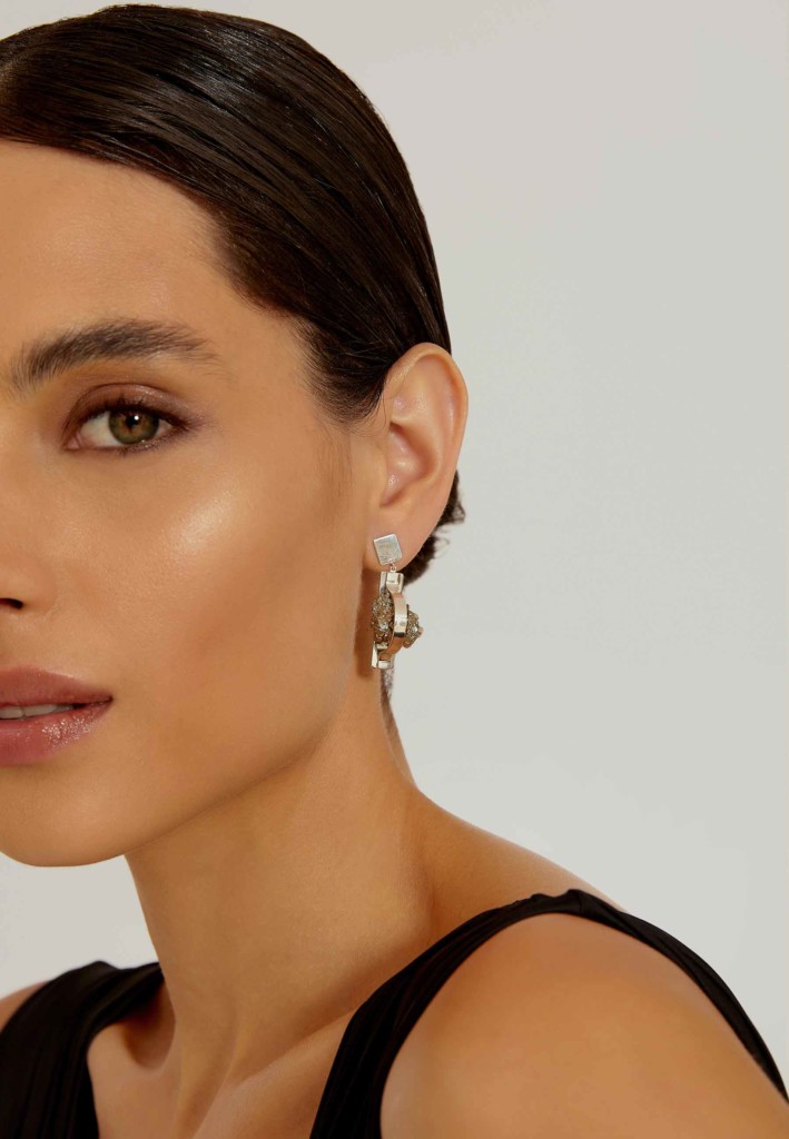 A estilista Lenny Niemeyer se juntou a Roda, marca de joias que trabalha com cristais e pedras como condutores de energia. A coleção, feita a quatro mãos, tem peças que misturam o primitivismo da matéria bruta à contemporaneidade do desenho das peças: