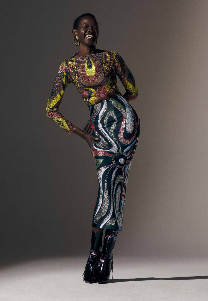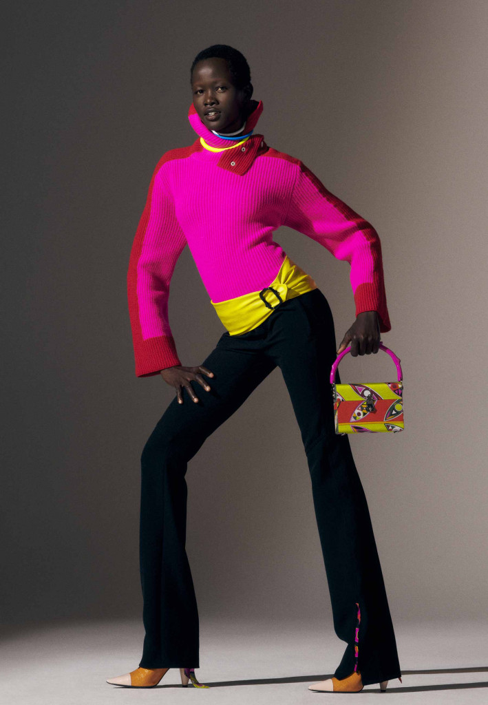 Camille aposta em peças curtas para o dia e em longas e fluidas para a noite, materializando o visual cool e esportivo dos anos 90 com um ar boêmio. Os materiais de revestimento elástico se adaptam e modelam todos os tipos de corpos e as calças de festa com babados prestam homenagem à cantora italiana Raffaella Carrà.