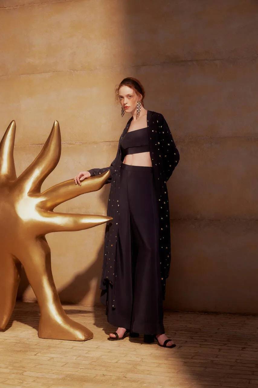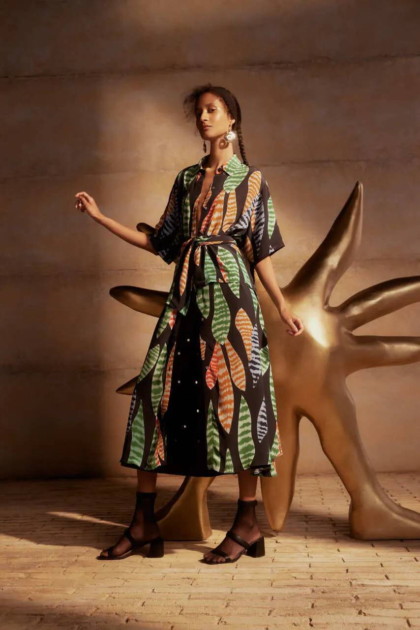 A coleção completa é composta por vestidos fluidos, camisas, conjuntos de top e calça, macacões, saias, croppeds e quimonos, além de acessórios e calçados. E todas as peças da collab carregam uma tag personalizada que dá mais detalhes sobre o processo criativo e as características de cada produto, como, por exemplo, os paetês de acetato que são bordados a mão.