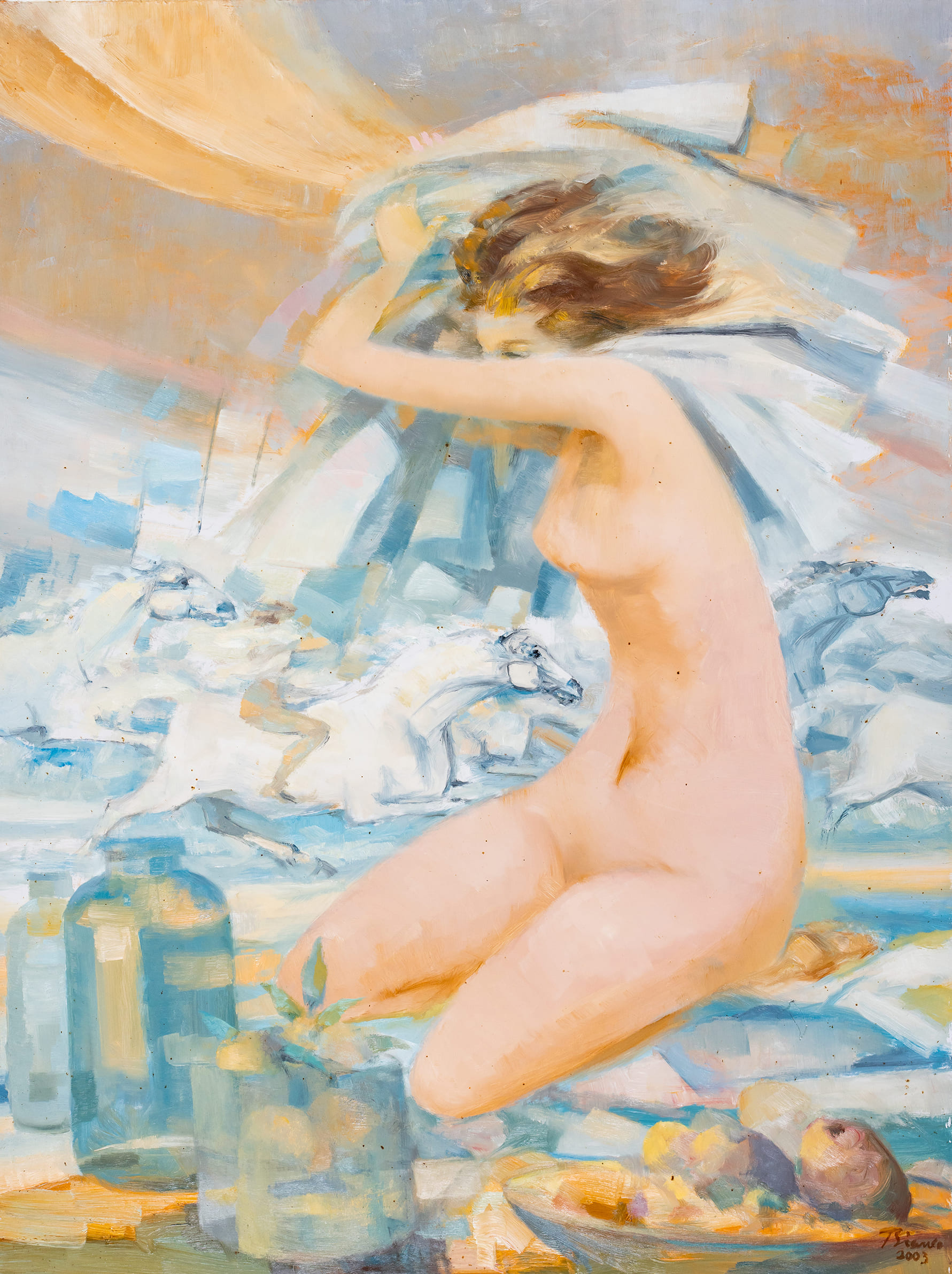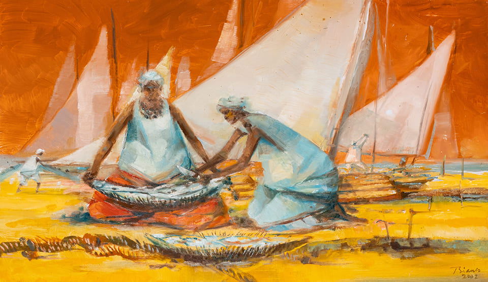 “Festejos populares, panoramas que guardam algo de metafísico, trabalhadores em harmonia com a natureza, animais em movimento, naturezas-mortas, nus. Rever em conjunto dezenas de obras de Enrico Bianco (1918-2013) (…) é também a reconstituição de um percurso longo e consistente pela história da arte brasileira”, afirma o curador em seu texto crítico, que faz parte de catálogo virtual exclusivamente feito para o recorte.
