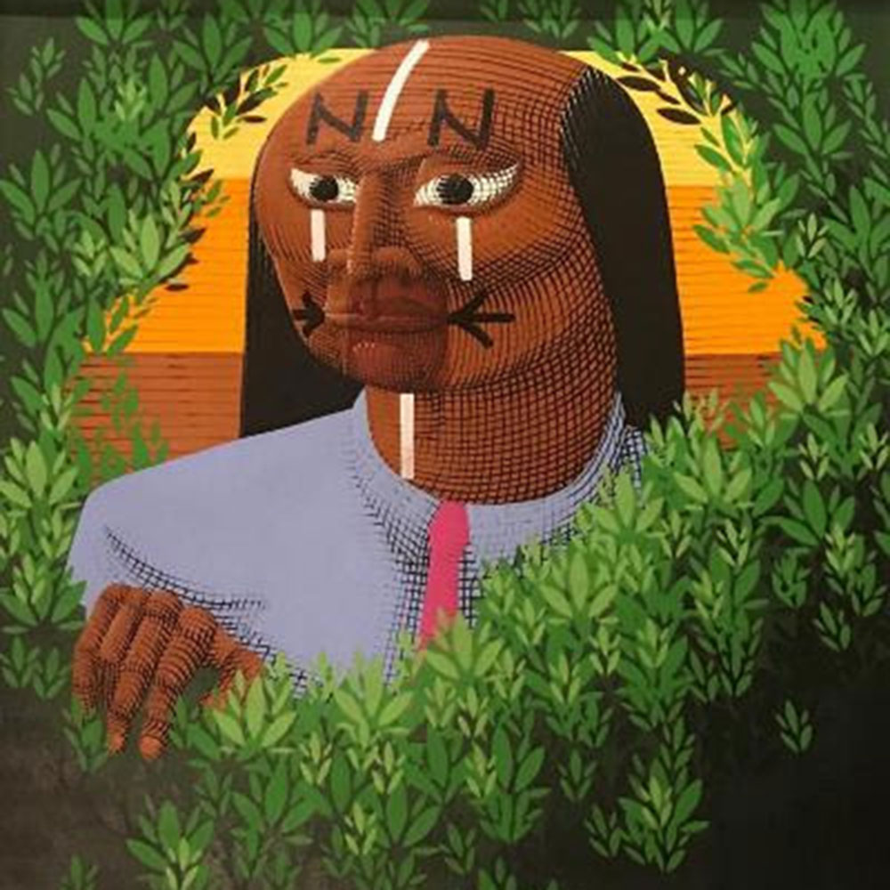 “Meide in Brazil” reúne pinturas que fazem alusão à litogravura, técnica de impressão em metal usada desde 1500 pelos colonizadores, para retratar índios, costumes, fauna e flora do País. Tal referência une-se à transgressão da linguagem praticada por Nunca, uma crítica à realidade globalizada e hiperconectada que segue marginalizando suas origens.