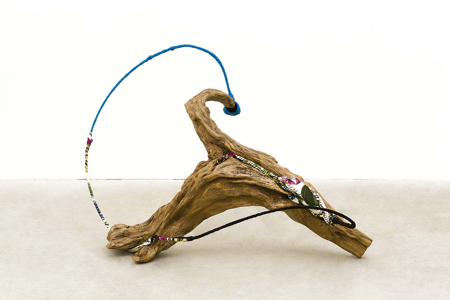 Moldar algo maleável como o tecido na estrutura fixa da madeira foi uma grande batalha. A artista precisou de tempo para entender como juntar os dois materiais. “O tecido tinha de obedecer aquela forma da natureza”, explica. “As últimas peças chegaram como satisfação, a conversa entre eles foi boa.”