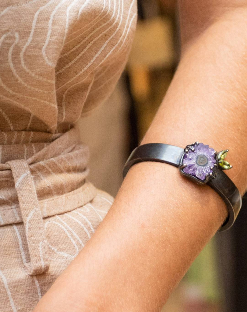 A marca homônima da designer pernambucana Duda Bradley cria joias minimalistas e lúdicas, utilizando um processo de upcycling que transforma ouro e prata descartados em peças únicas. Além disso, as pedras utilizadas são selecionadas por serem fora do “padrão”, rejeitadas pela joalheria tradicional. A estética cósmica, inspirada no céu, se reflete em colares, brincos e pulseiras, promovendo não apenas beleza, mas uma consciência ambiental.