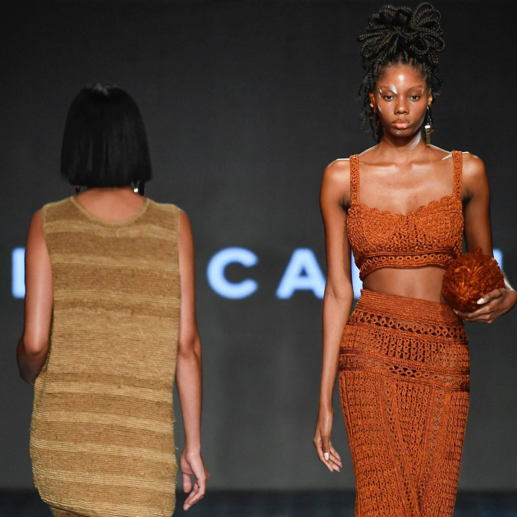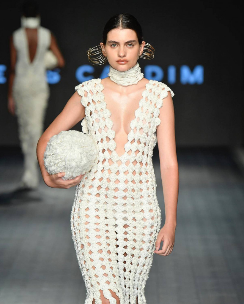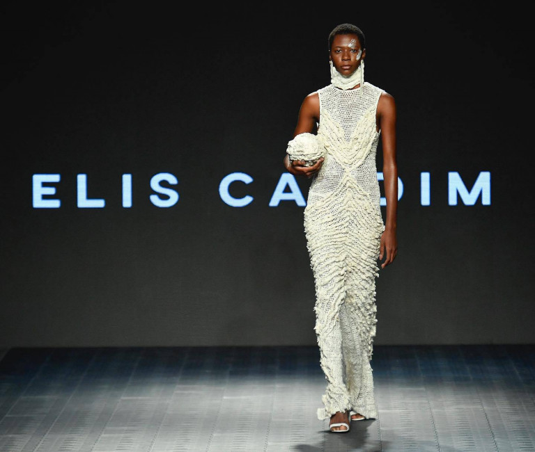 Natural de Ipiaú, na Bahia, Elis Cardim eleva o crochê a um novo patamar, criando vestidos que combinam técnica e sustentabilidade. Ao invés de fios de algodão, ela utiliza fios de seda que garantem uma textura luxuosa e maior durabilidade. O tingimento é realizado com vegetais, e a seda é proveniente de casulos que seriam descartados pela indústria nacional. Com um forte compromisso social, Elis trabalha em parceria com comunidades de crocheteiras, garantindo que cada peça seja confeccionada com carinho e atenção aos detalhes.
