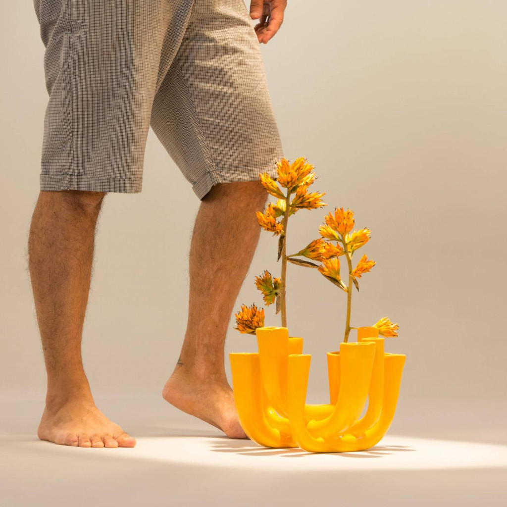 O pernambucano Fabio Melo, natural de Caruaru, traz às suas criações as memórias afetivas da infância no sertão. Suas peças minimalistas e contemporâneas são frequentemente desenvolvidas em colaboração com artesãos locais, utilizando materiais renováveis e preservando saberes ancestrais. O resultado são produtos que não apenas refletem a cultura nordestina, mas também incentivam a economia local de forma sustentável.