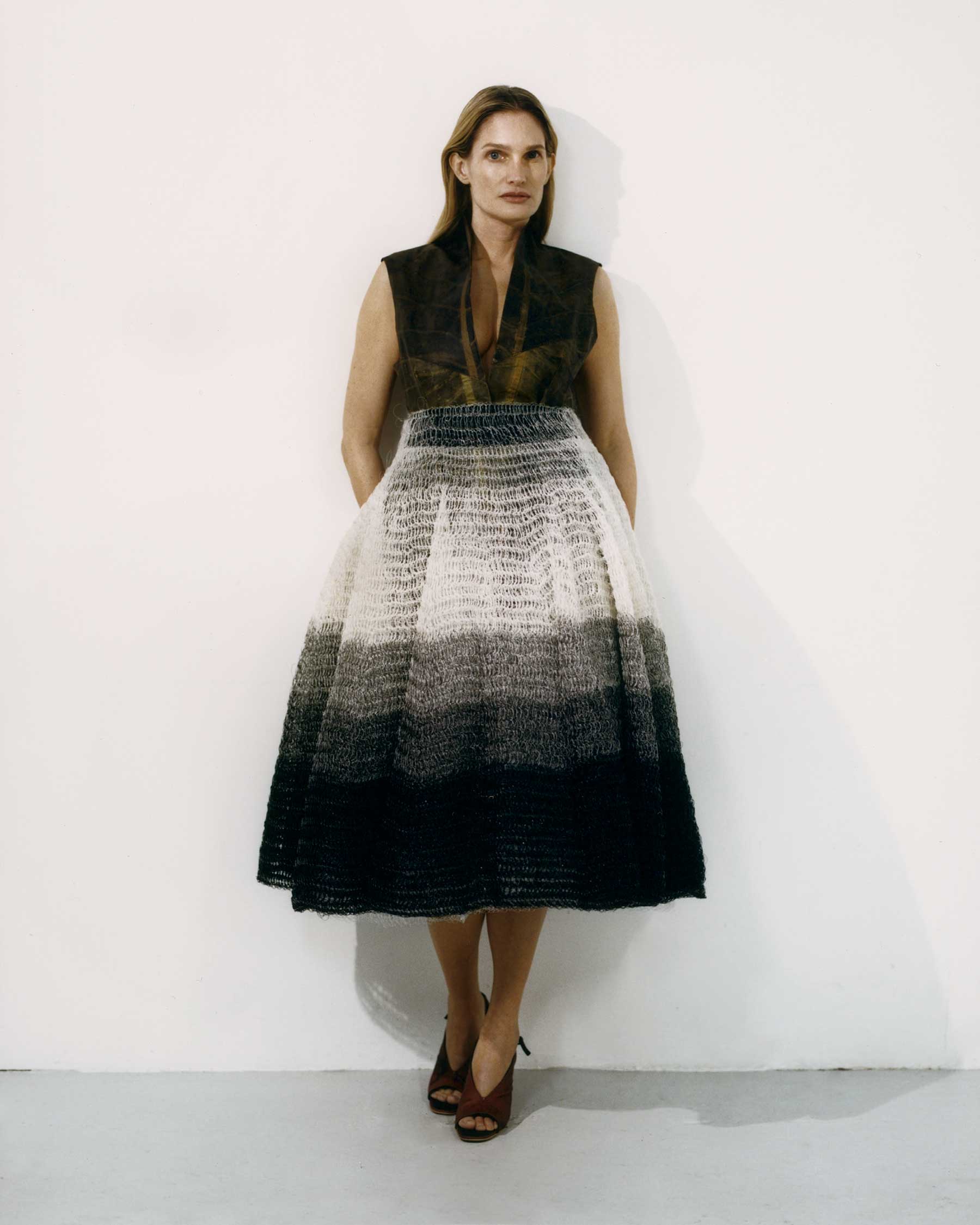 Na ponta desse movimento verde está o micélio, a parte vegetativa do fungo – pense que os cogumelos são os frutos e o micélio é a parte da raiz, um emaranhado de linhas brancas que entram em contato com as superfícies onde o fungo cresce. Originalmente estudado em pesquisas espaciais, na arte e arquitetura (tem fama de aguentar mais pressão do que o concreto e ainda é isolante e resistente ao fogo), ele chamou a atenção na moda.