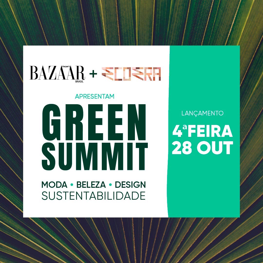O Green Summit será transmitido gratuitamente pelas plataformas Harper’s Bazaar Brasil (@bazaarbr) e Ecoera (@portalecoera)