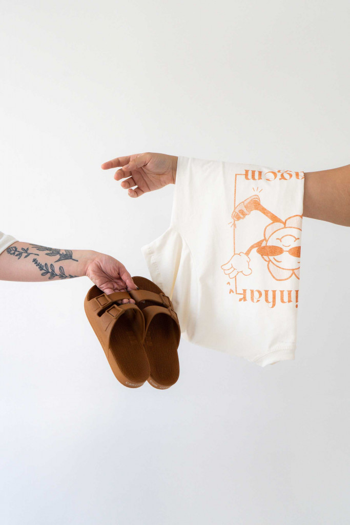 Fundadas por duas jovens empreendedoras, Isabela Chusid e Lela Brandão as marcas de lifestyle Linus, criadora da primeira sandália de plástico vegana nacional; e Lela Brandão Co, de roupas confortáveis que se adaptam a diferentes corpos, estão juntas em uma collab.