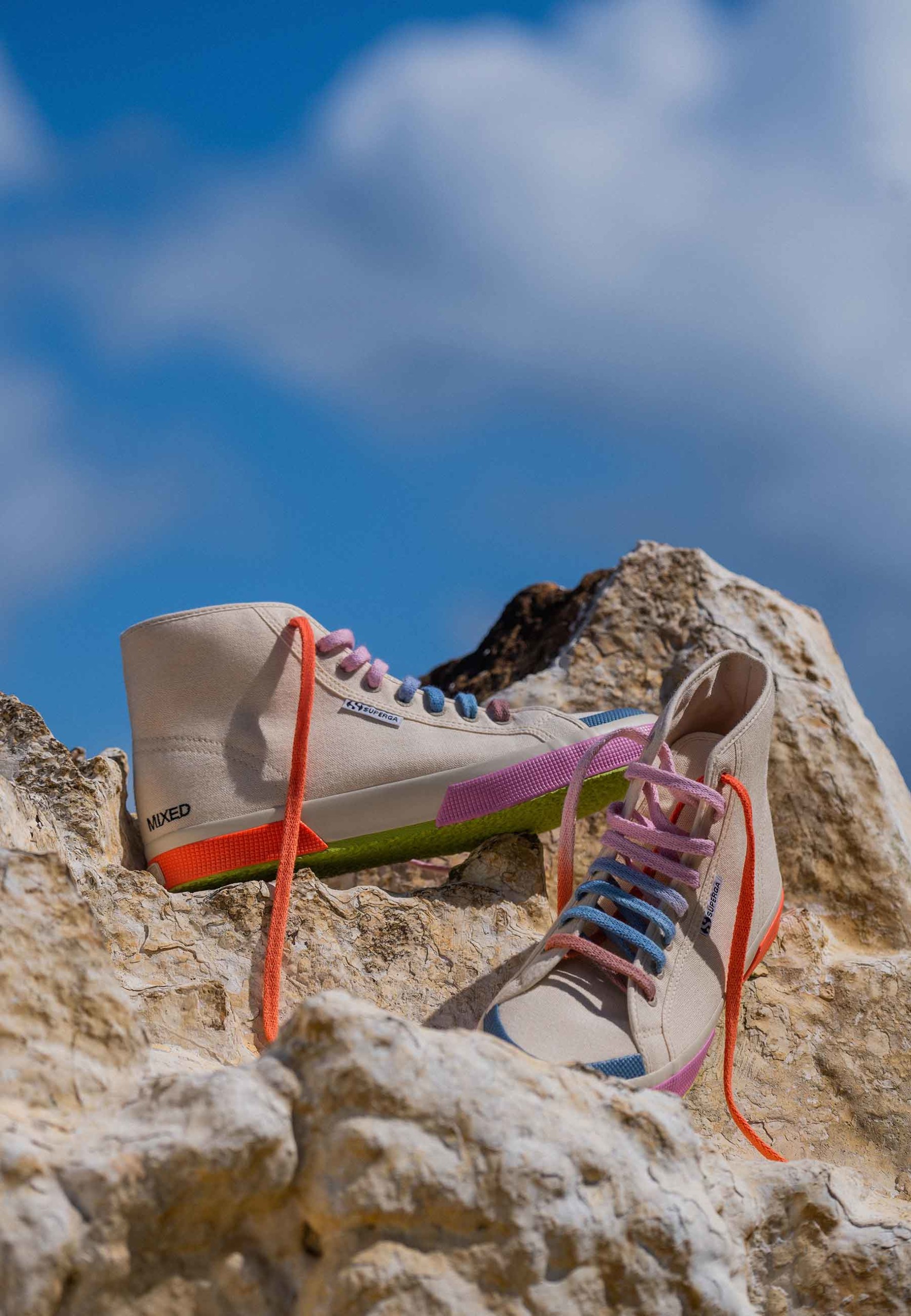 As grifes Mixed e a Superga Brasil anunciam sua segunda collab: tênis sustentáveis com tiragem limitada e numeração que vai do 34 ao 39. A aposta da vez é em modelos de cano alto em lona de algodão off white, o “Carnaúba” e o “Corumbau”, inspirados no artesanato brasileiro.