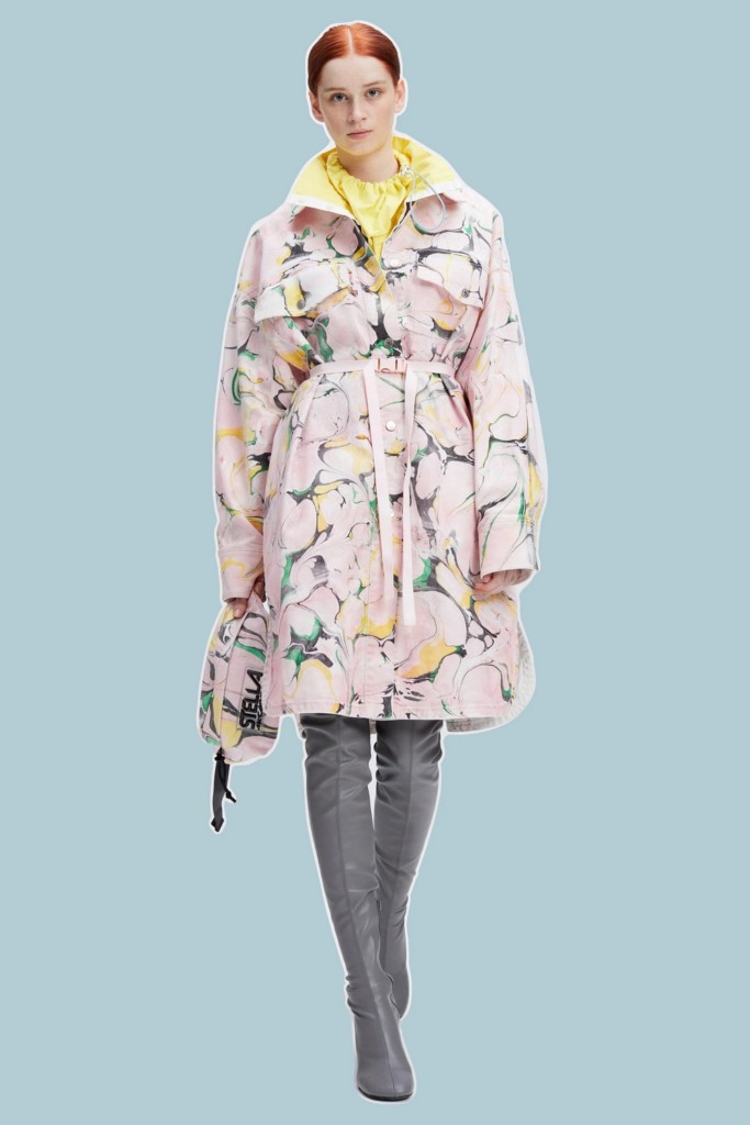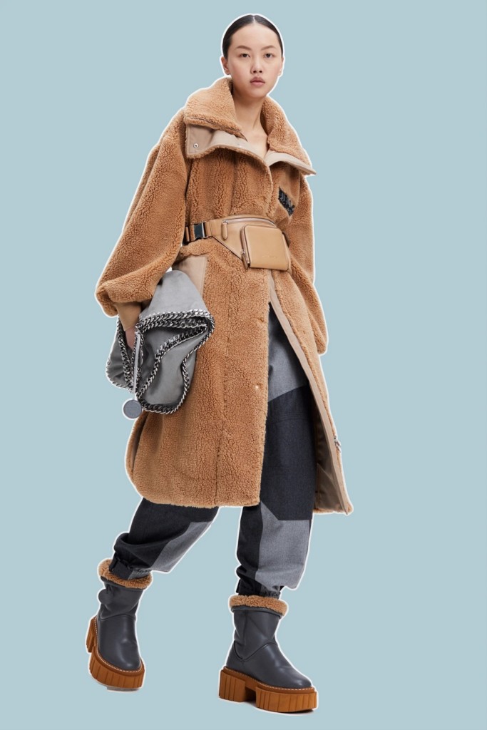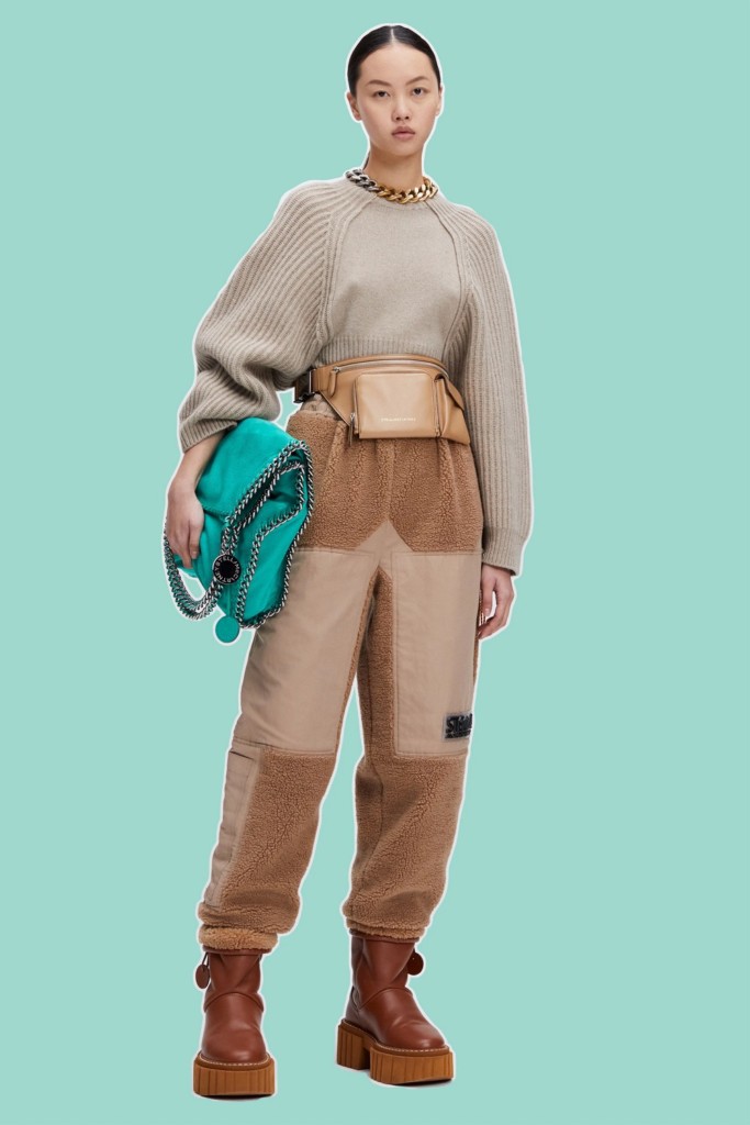 Com uma pegada mais sporty e inspirada nas roupas para esqui, a lã reciclada e um material apelidado de Stellawear – criado com nylon regenerado de redes de pesca, resíduos de fábricas e elastano não-tóxico – são o destaque da coleção, criando uma espécie de patchwork esportivo com os materiais do acervo da marca.