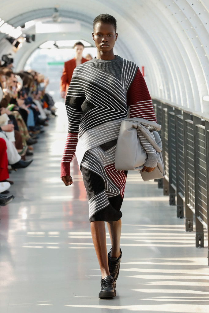 Sem abrir mão do discurso de responsabilidade ambiental abraçado pela marca, 67% da coleção foi feita com materiais sustentáveis, incluindo viscose eco-friendly, algodão orgânico, nylon e poliéster reciclados e lã de fontes rastreáveis. “Essa coleção é sobre trazer novos tecidos para a nossa marca. Resíduos de casca de uva – então todo o vinho que você andou bebendo durante o lockdown foi transformado em bolsas”, conta Stella em entrevista ao WWD.