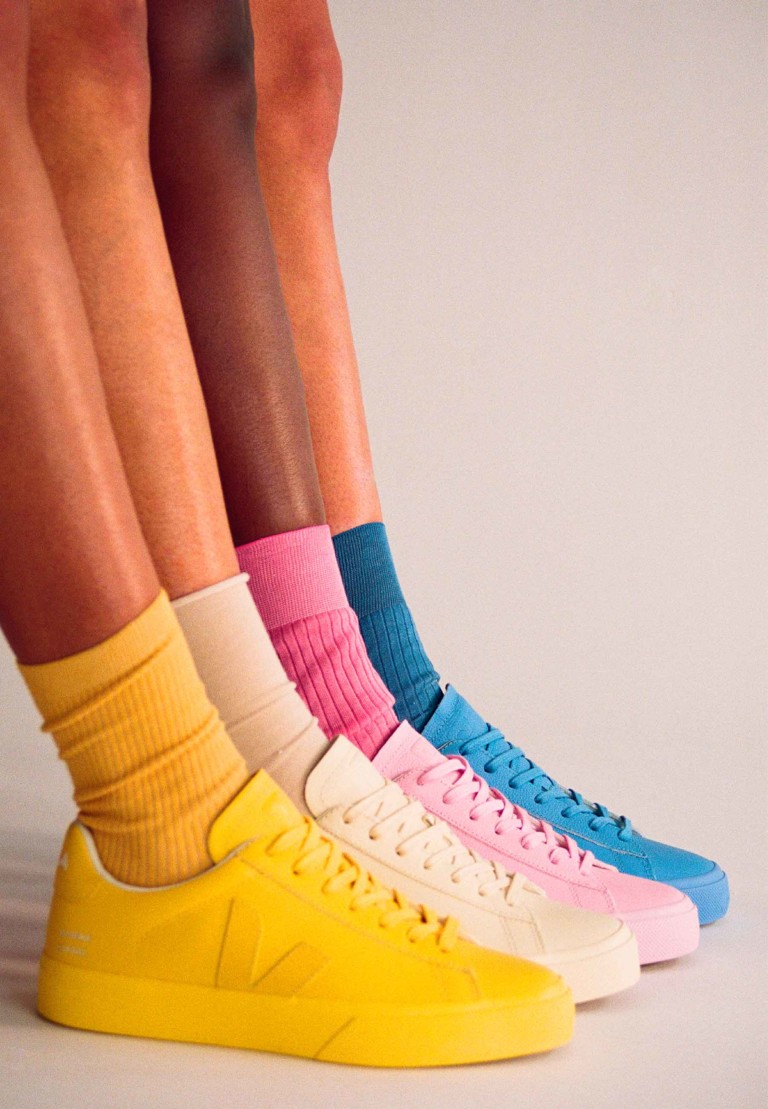 A Vert anuncia collab com a Mansur Gavriel: as marcas criaram tênis em um campo monocromático em quatro tons, inspirados no arco-íris. O couro utilizado é o ChromeFree, que passa por um inovador processo de curtimento sem cromo, metais pesados ou ácidos perigosos. As solas contêm borracha amazônica, borracha reciclada e resíduos de arroz.