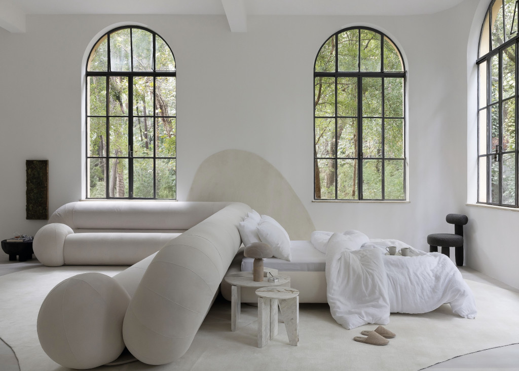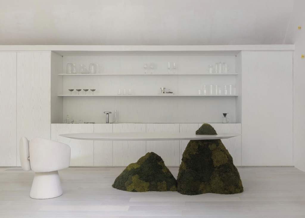 Inspirado pelas paisagens nebulosas das serras de Minas Gerais, o “Loft Sussurro das Montanhas”, assinado por Natan Gil, é dominado pelo branco. Evocando as manhãs de sua terra natal, o espaço abriga cozinha, quarto, banheiro, e living com detalhes e peças pontuais que quebram a claridade. Janelas amplas, abertas para a área verde, buscam eliminar a linha que divide o interior do exterior.