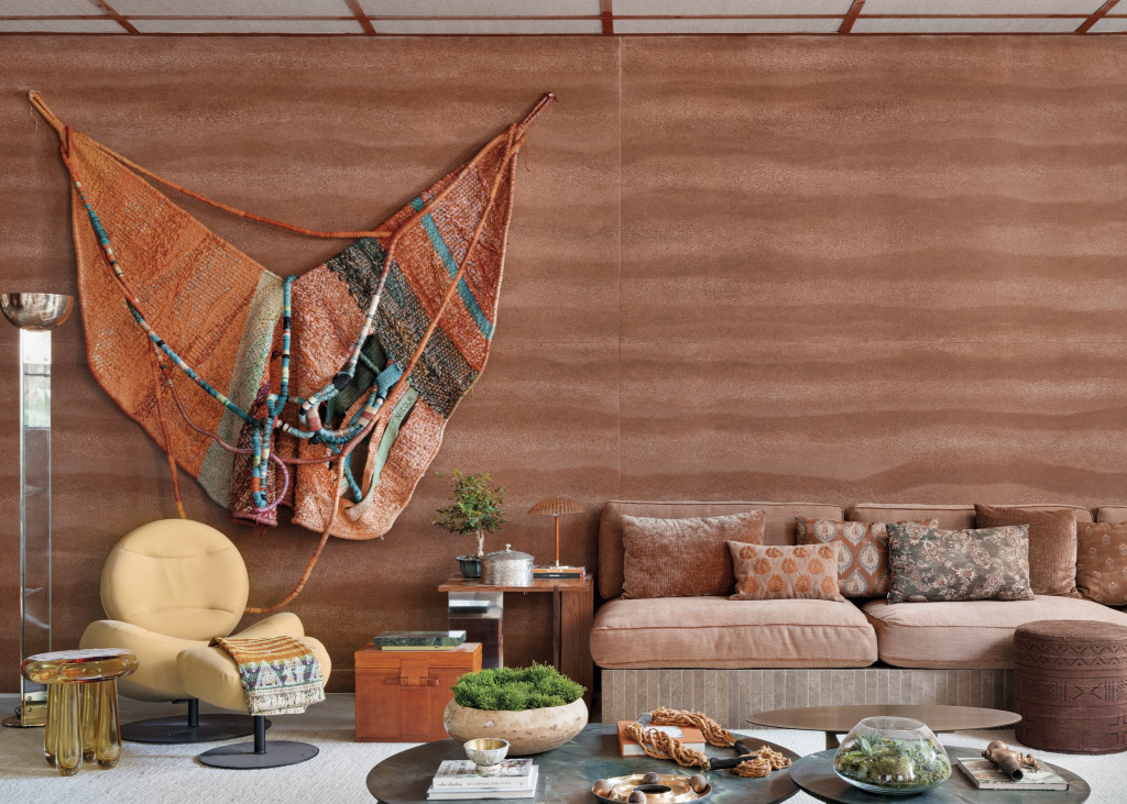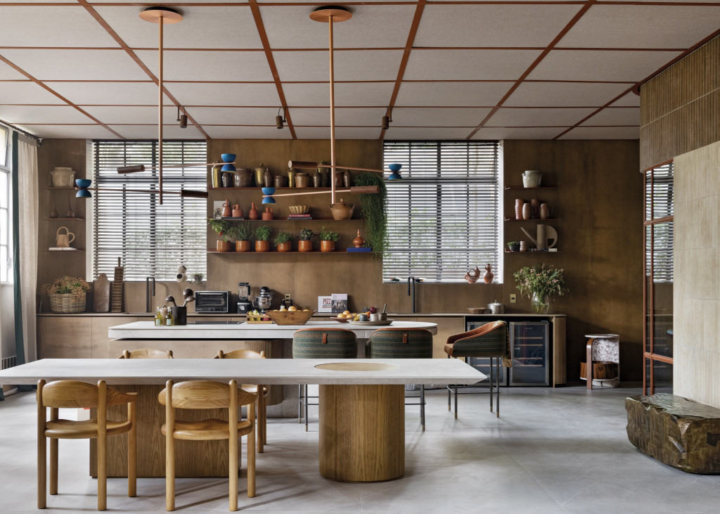 Na “Casa Alquimia do Morar Portinari”, Marina Linhares propõe uma fusão entre memória e tecnologia ao apresentar sua nova coleção de revestimentos em parceria com a Portinari. A brasilidade se revela nos detalhes, como na linha Petra Taipa, que remete à rusticidade das construções de barro. Com inspiração no modernismo dos anos 1970, o projeto busca ser um manifesto sobre o habitar.