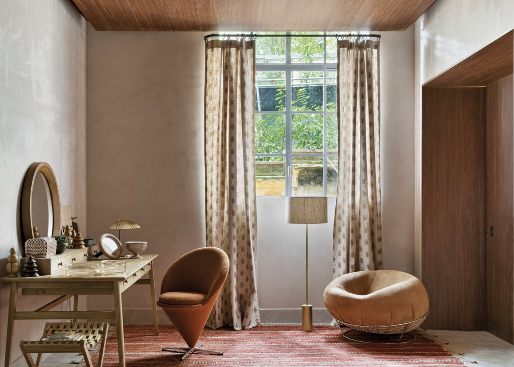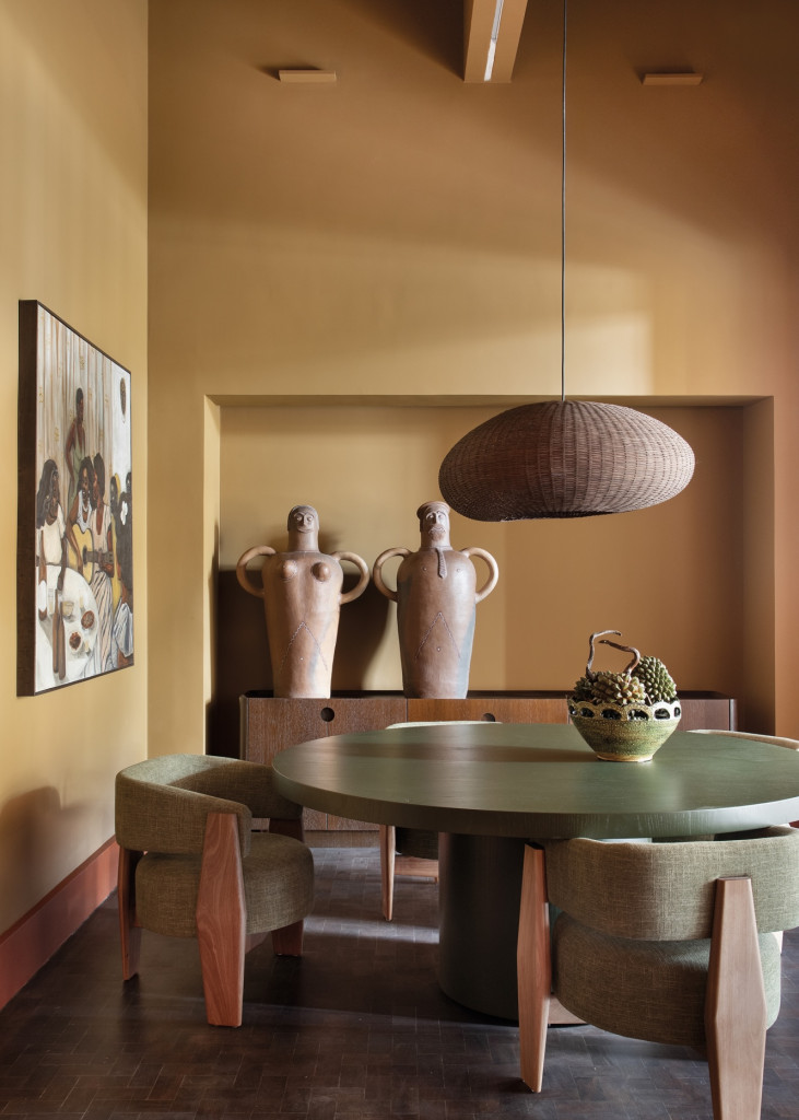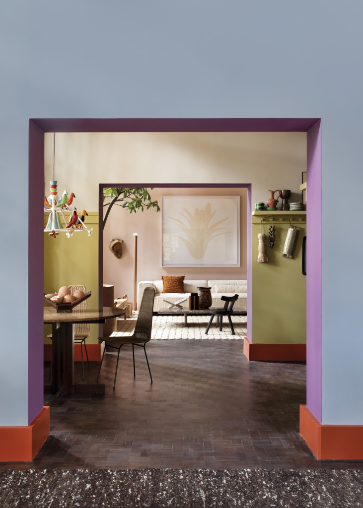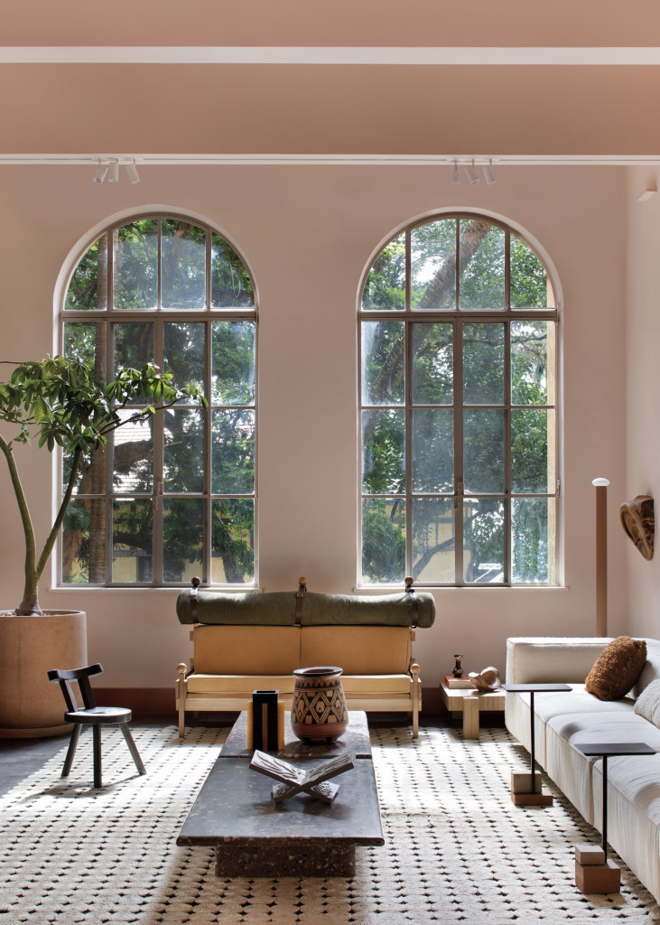 Na “Casa Coral – Cores do Parque”, o arquiteto Maurício Arruda propõe uma imersão nas nuances do Parque da Água Branca. O projeto explora uma paleta de nove cores extraída diretamente da vegetação local, desenvolvida em parceria com a pesquisadora Maibe Maroccolo e a marca de tintas Coral. A proposta, aqui, é valorizar a natureza e a brasilidade com um mix entre peças antigas, design contemporâneo e arte popular.