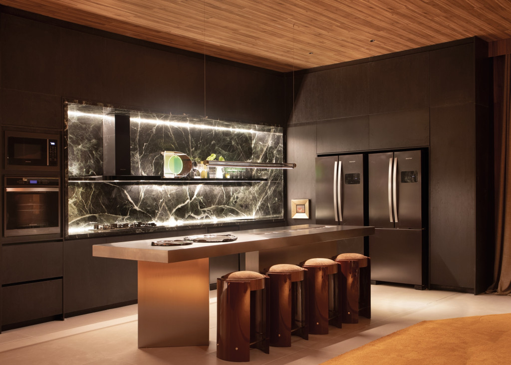 Na “Casa Brastemp”, o projeto assinado pelos irmãos Caio e Carlos Carvalho aposta em uma integração inusitada entre lavanderia e banheiro — uma escolha que convida o público a refletir sobre hábitos e formas de ocupação. As cores vibrantes revelam uma estética contemporânea, alinhada às tendências globais, mas com um toque brasileiro. Após a exposição, os arquitetos irão reaproveitar as divisórias de vidro vermelho utilizadas no projeto e transformá-las em mobiliário.