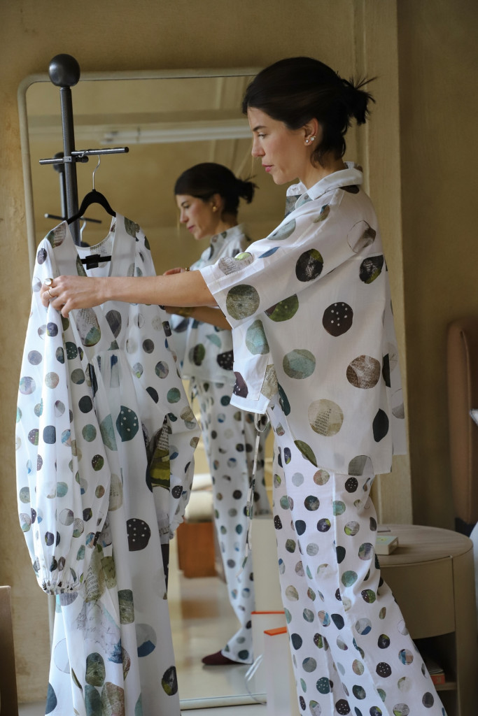 O desejo da dupla foi transportar as texturas das telas para o universo do homewear, construindo camadas que viram bordados e composições de objetos. Destaque para os pijamas de Toia, com obras aplicadas em bordados e estampas, pensados para circular com a mesma força no sofá ou na rua.