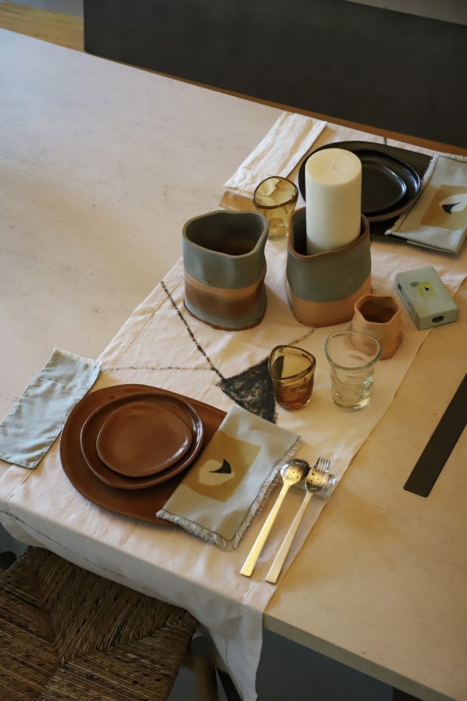 A linha reúne peseiras e almofadas bordadas à mão, itens de mesa, como pratos de cerâmica e copos de vidro com volumes tridimensionais e orgânicos, além de jogos americanos, guardanapos e acessórios. “Cada uma teve total liberdade para criar suas peças. Quando nos reunimos para mostrar as pilotos, a sinergia foi absoluta”, diz Toia.“Interpretar a arte da Toia foi interessante porque pudemos trazer cor para um trabalho que muitas vezes é silencioso”, completa Ligia.