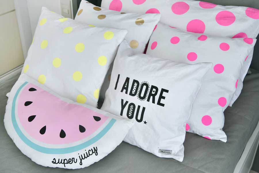 A cômoda de bebê que guardava as roupas deu lugar ao grande gaveteiro de tonalidades marcantes, com puxadores diferentes, acompanhado de penteadeira e repartições para anéis, pulseiras, brincos e colares. Destaque ainda para o enxoval, os pôsteres e os dois nichos com colchonetes dobráveis colocados debaixo de uma das camas, que são convertidos em colchão de solteiro para receber as amigas.
