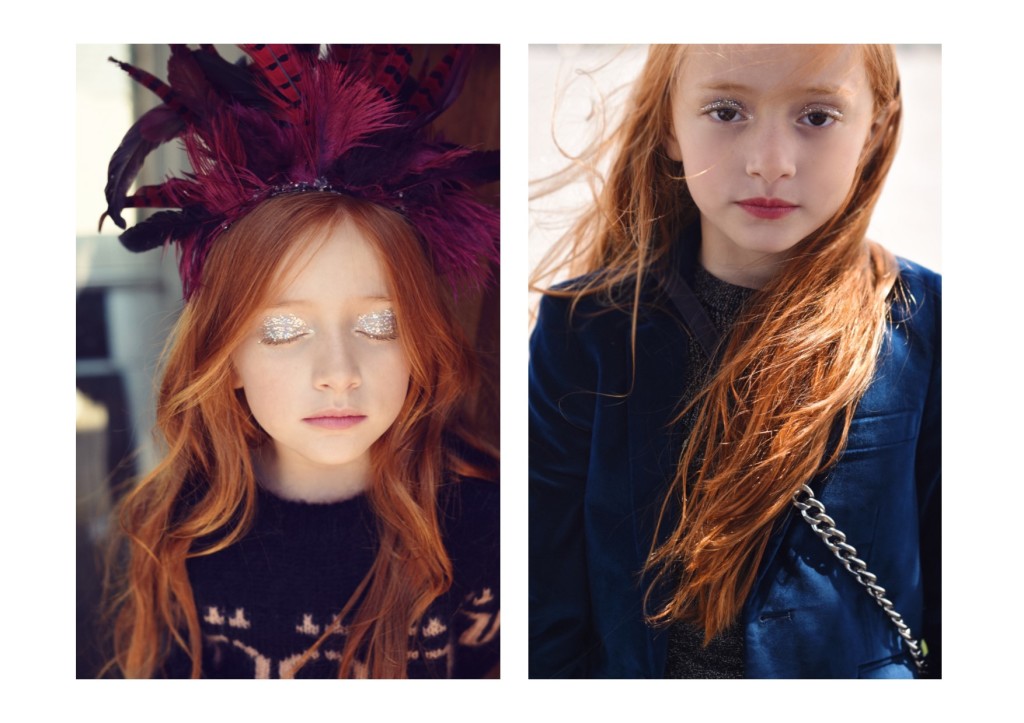 8 / 9À esquerda, Suéter, LES COYOTES DE PARIS, tiara, HANDMADE BY STYLIST. À direita, Blazer, APPAMAN, suéter, LES COYOTES DE PARIS, bolsa, STELLA McCARTNEY KIDS